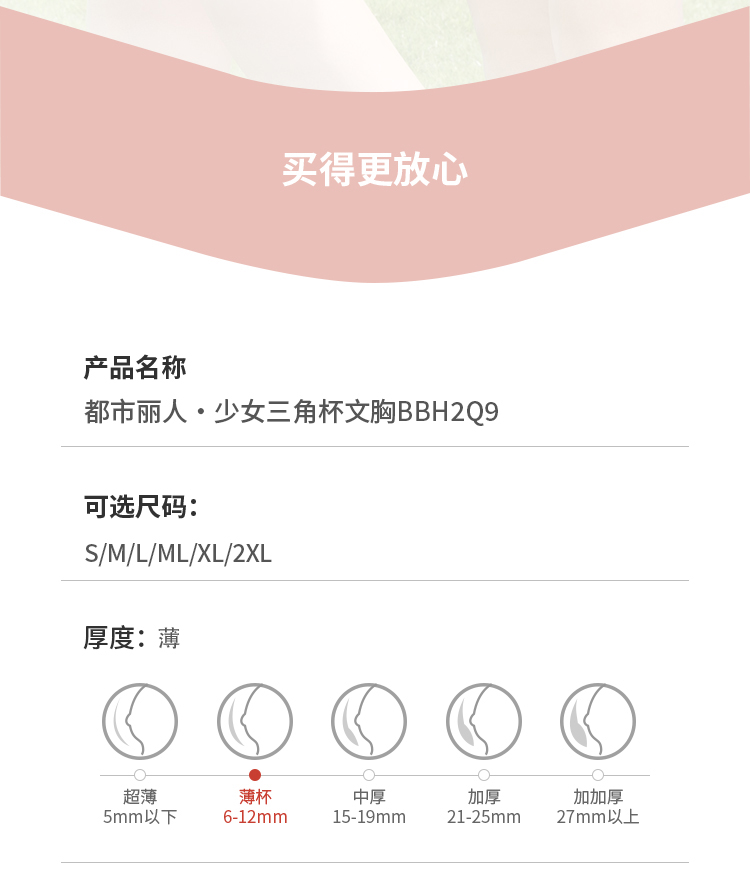 都市丽人内衣薄泳布少女优选三阶无钢圈少女文胸BBH2Q9