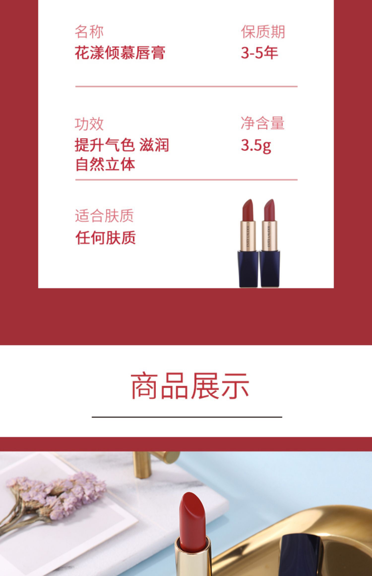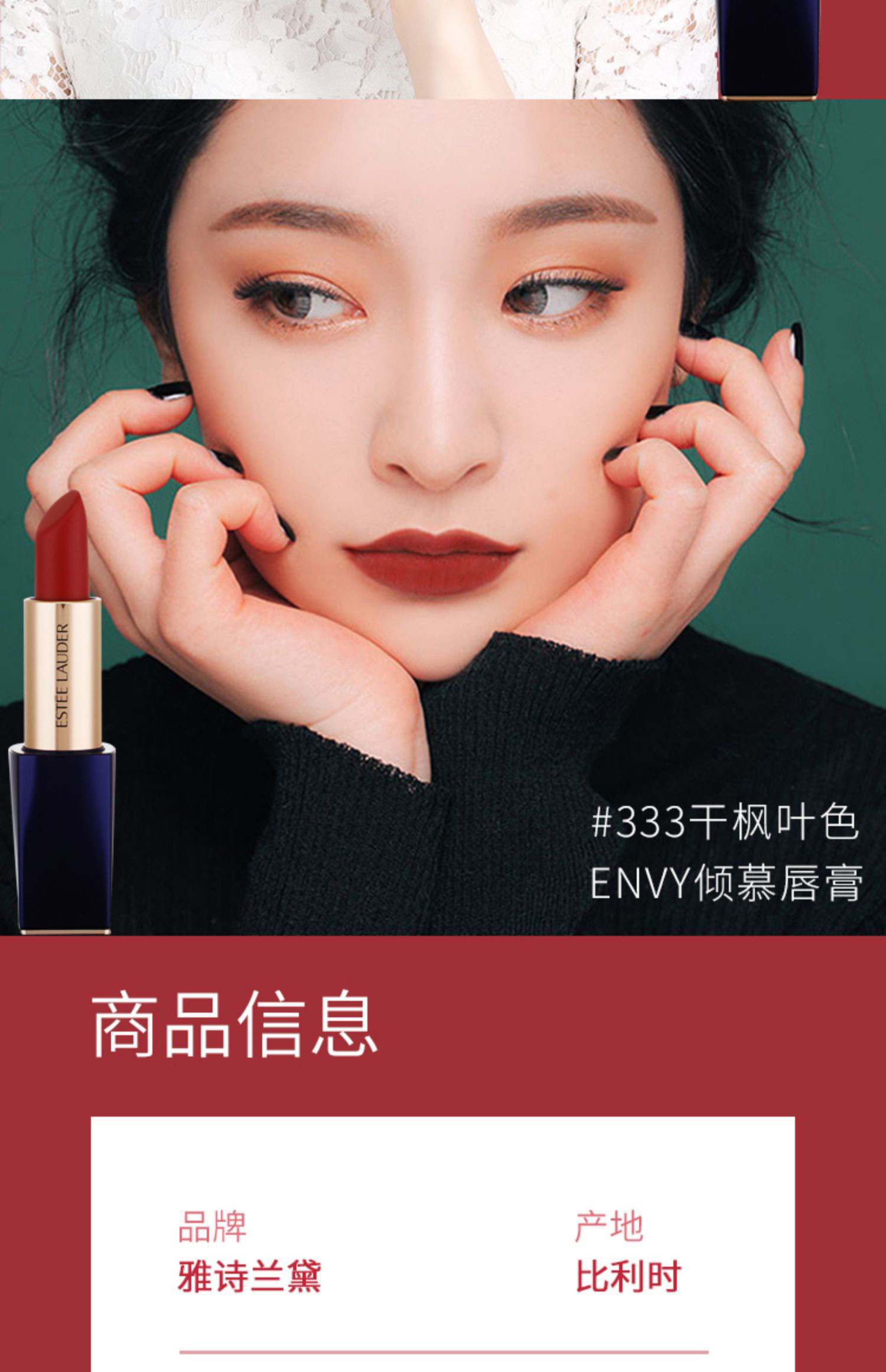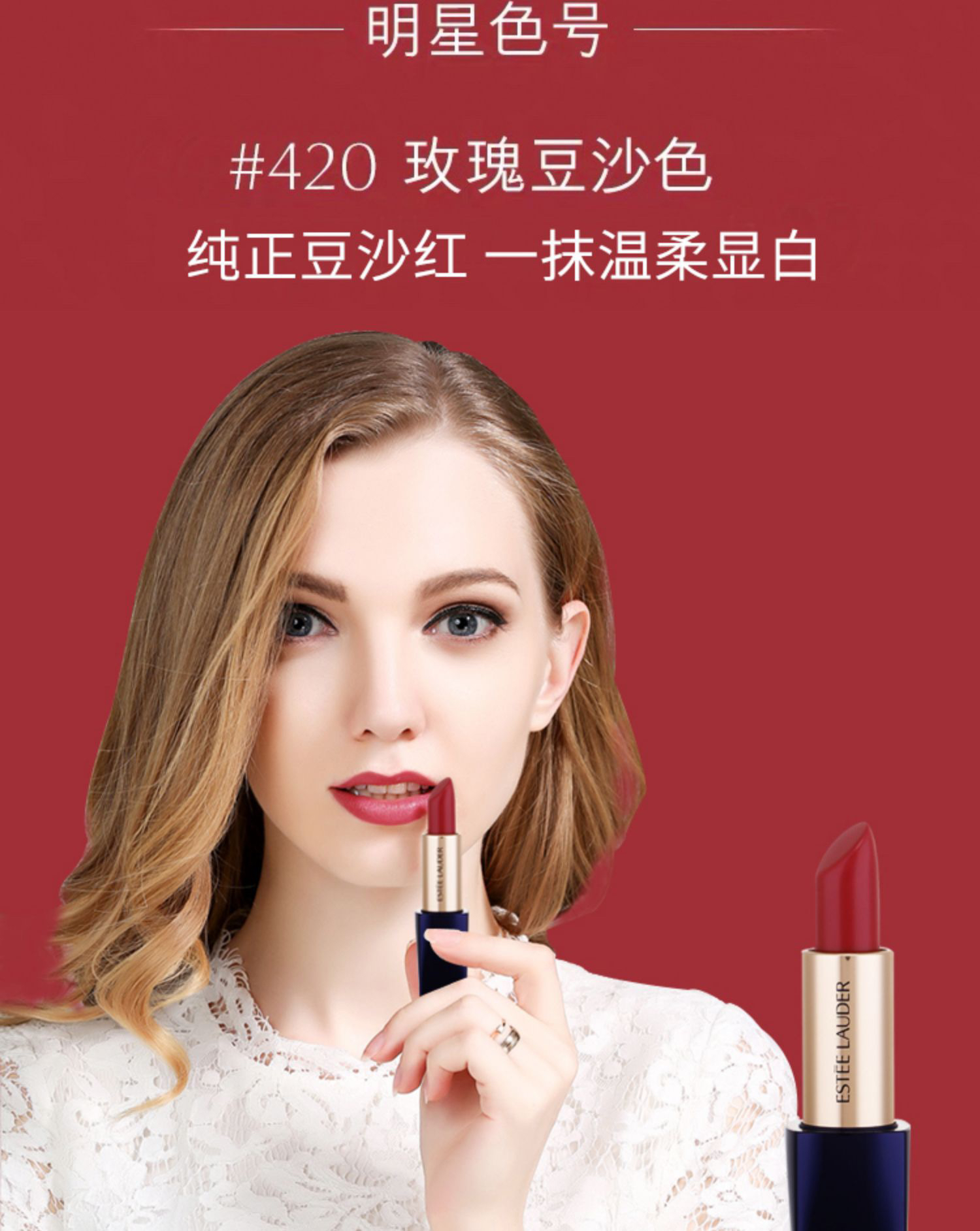 雅诗兰黛唇膏420#豆沙色/333#枫叶红