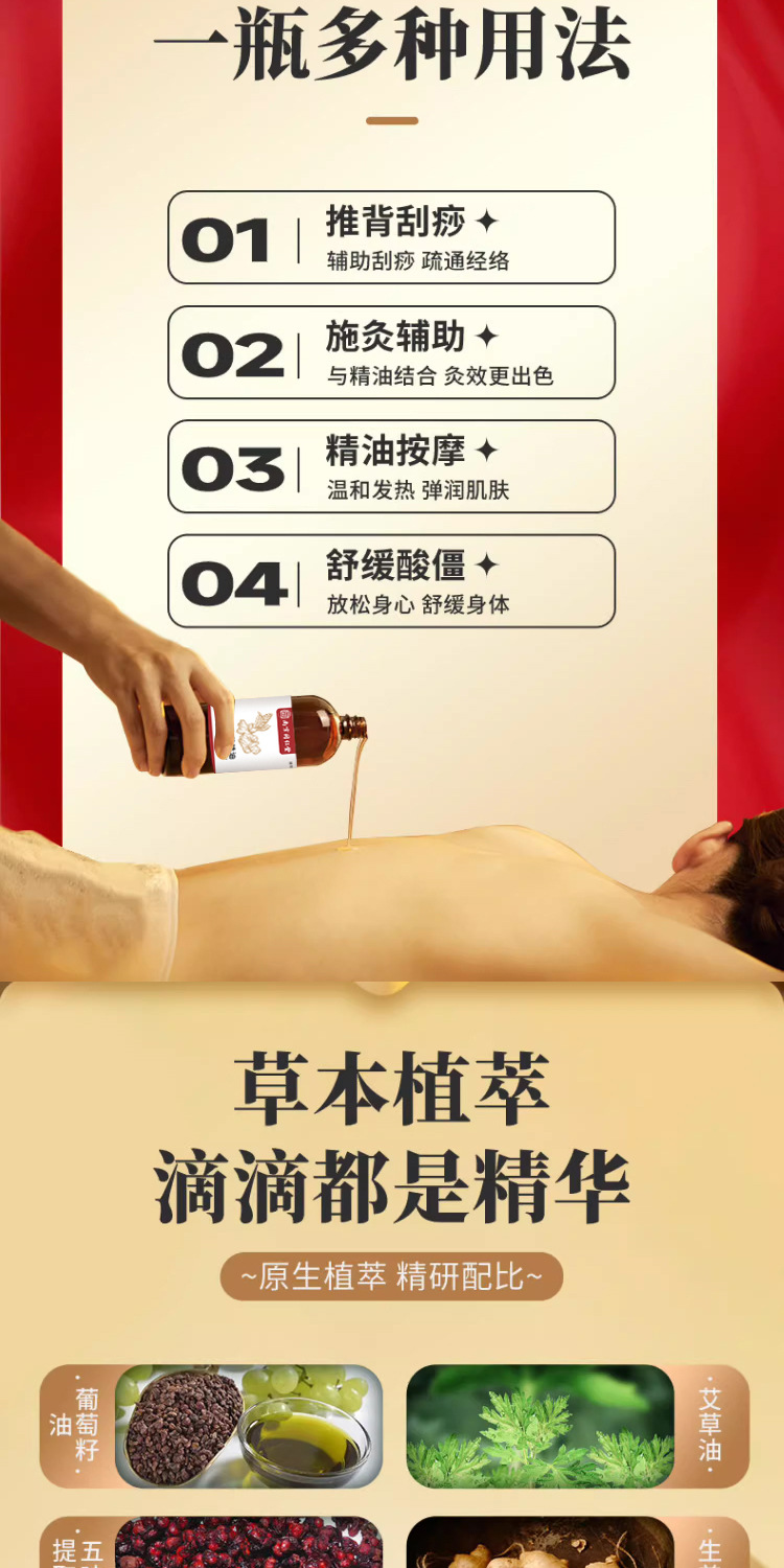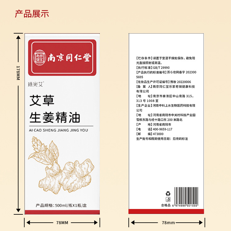 南京同仁堂艾草生姜舒缓按摩精油发热开背推油身体刮痧精油批发