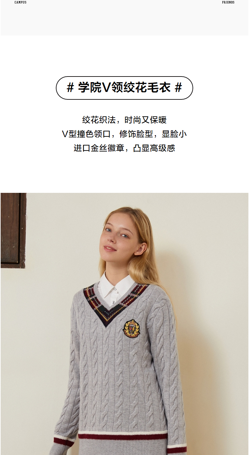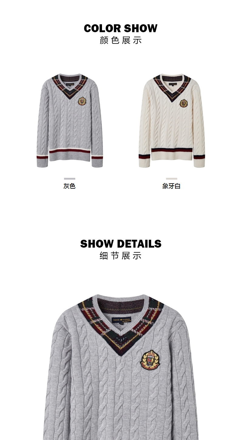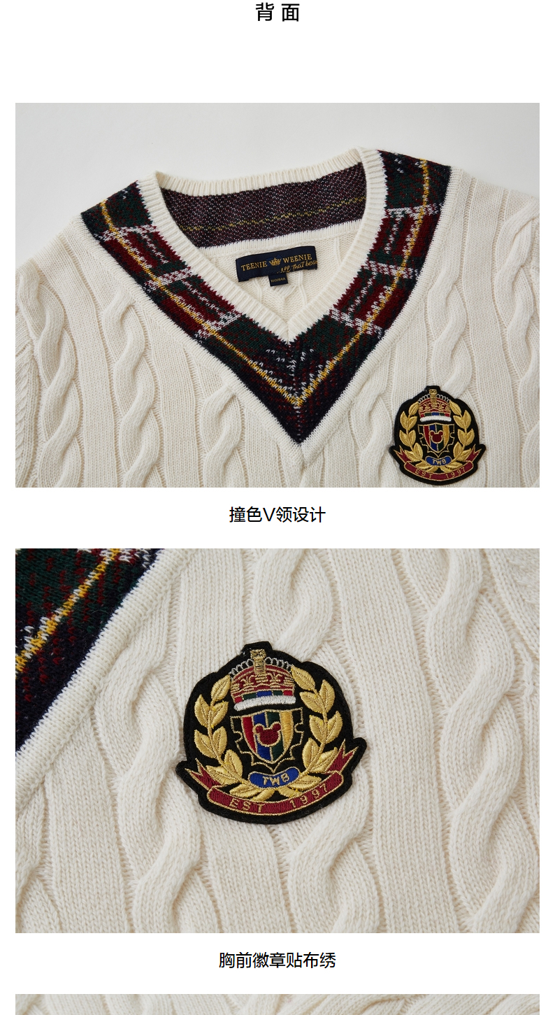 TeenieWeenie小熊V领针织衫套头毛衣外穿叠穿学院风韩版显瘦女冬TTKW214910P