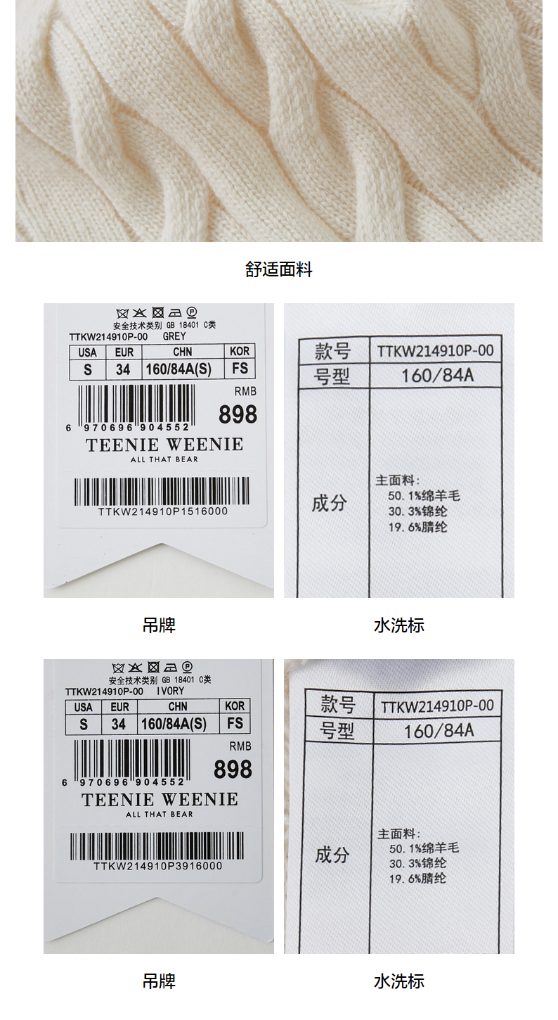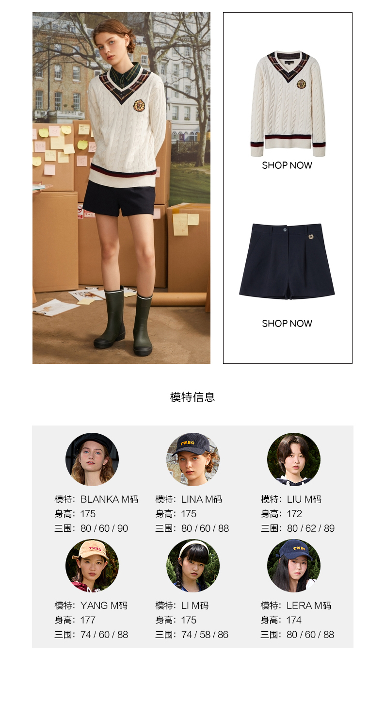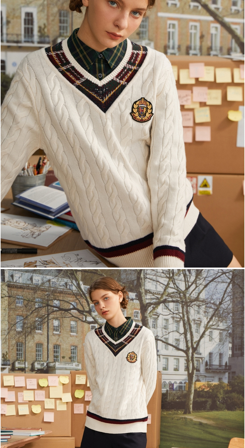 TeenieWeenie小熊V领针织衫套头毛衣外穿叠穿学院风韩版显瘦女冬TTKW214910P