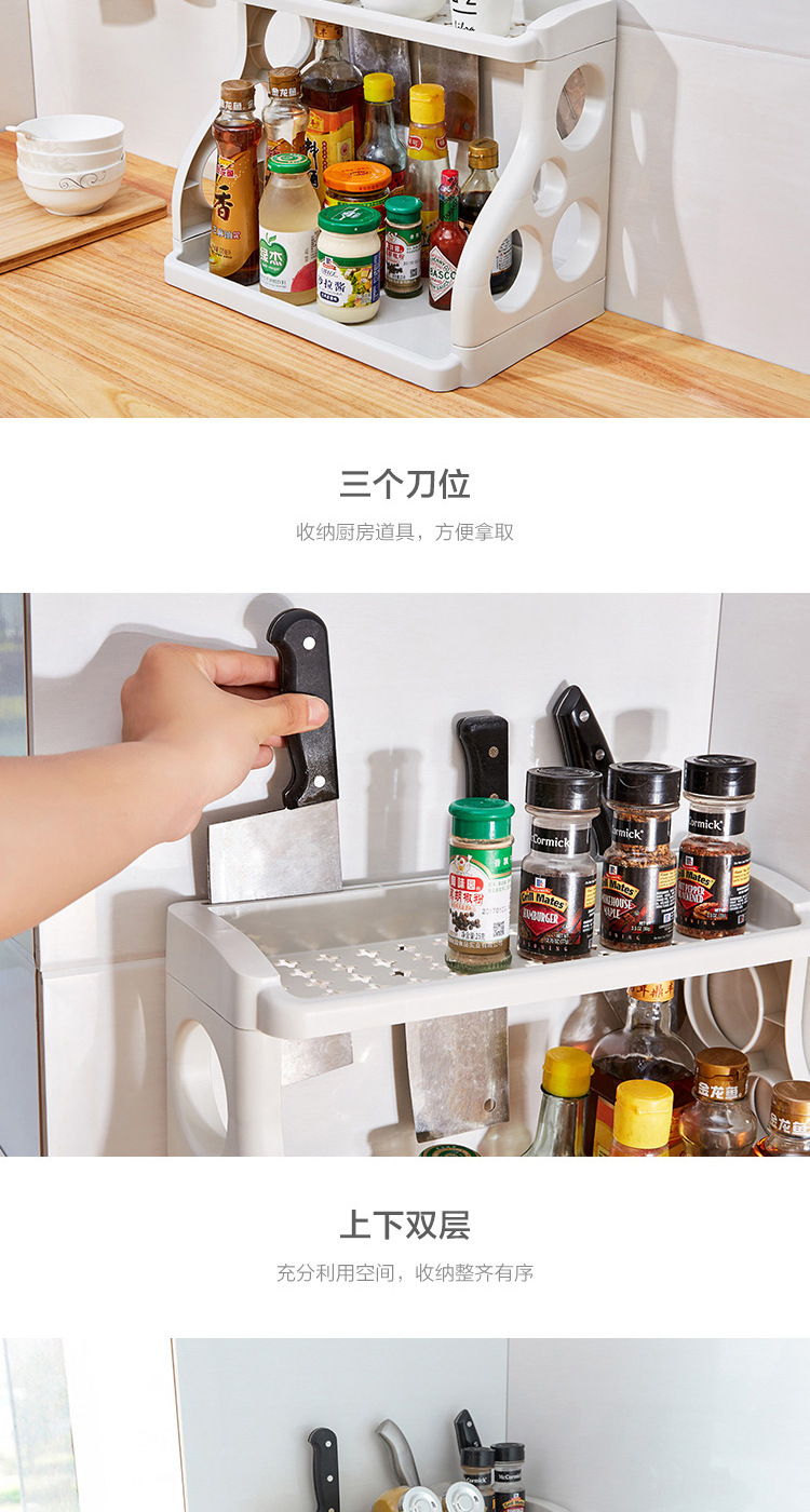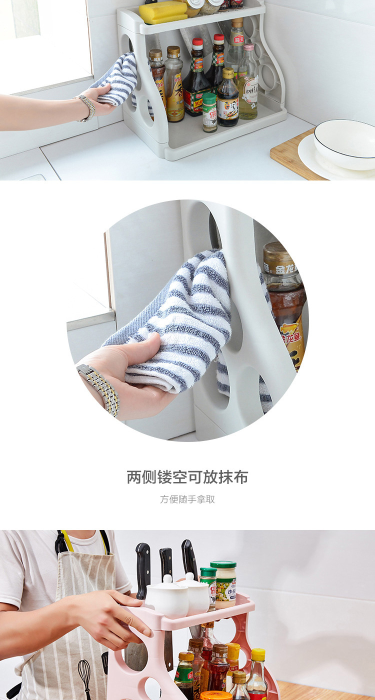 【日用百货】厨房用品置物架 落地两层调料架 多功能调味料菜刀收纳架