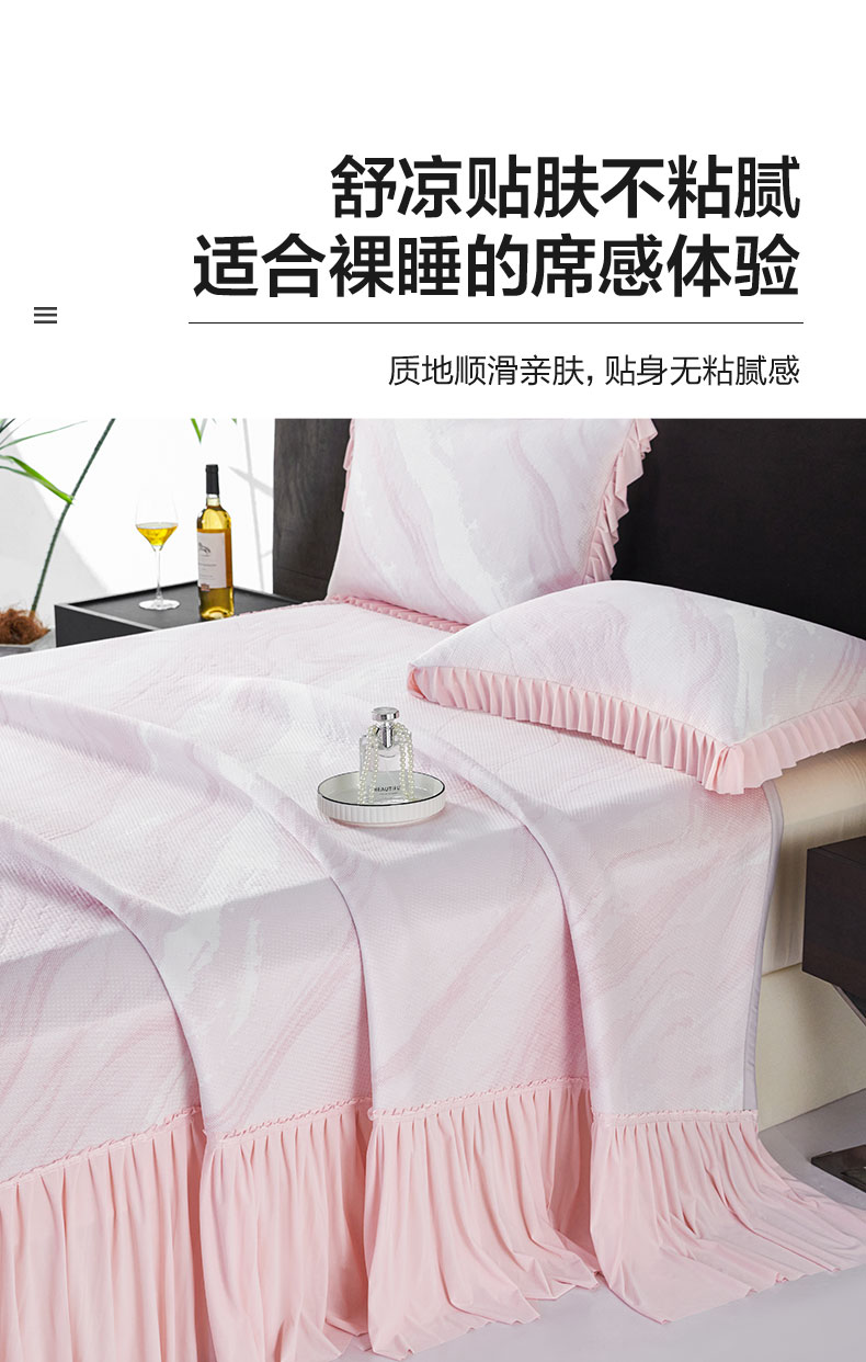 【多样屋专柜】多样屋凉席可水洗轻奢双面凉感席三件套-粉色/250*250cm(两枕套+一凉席)