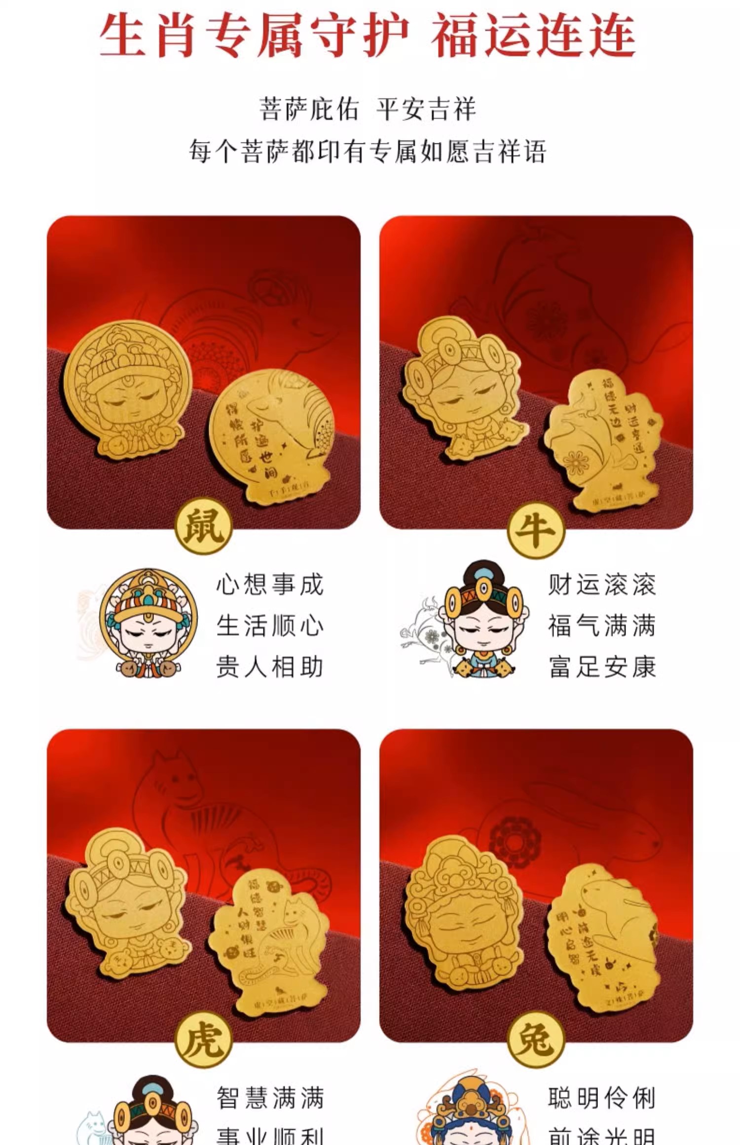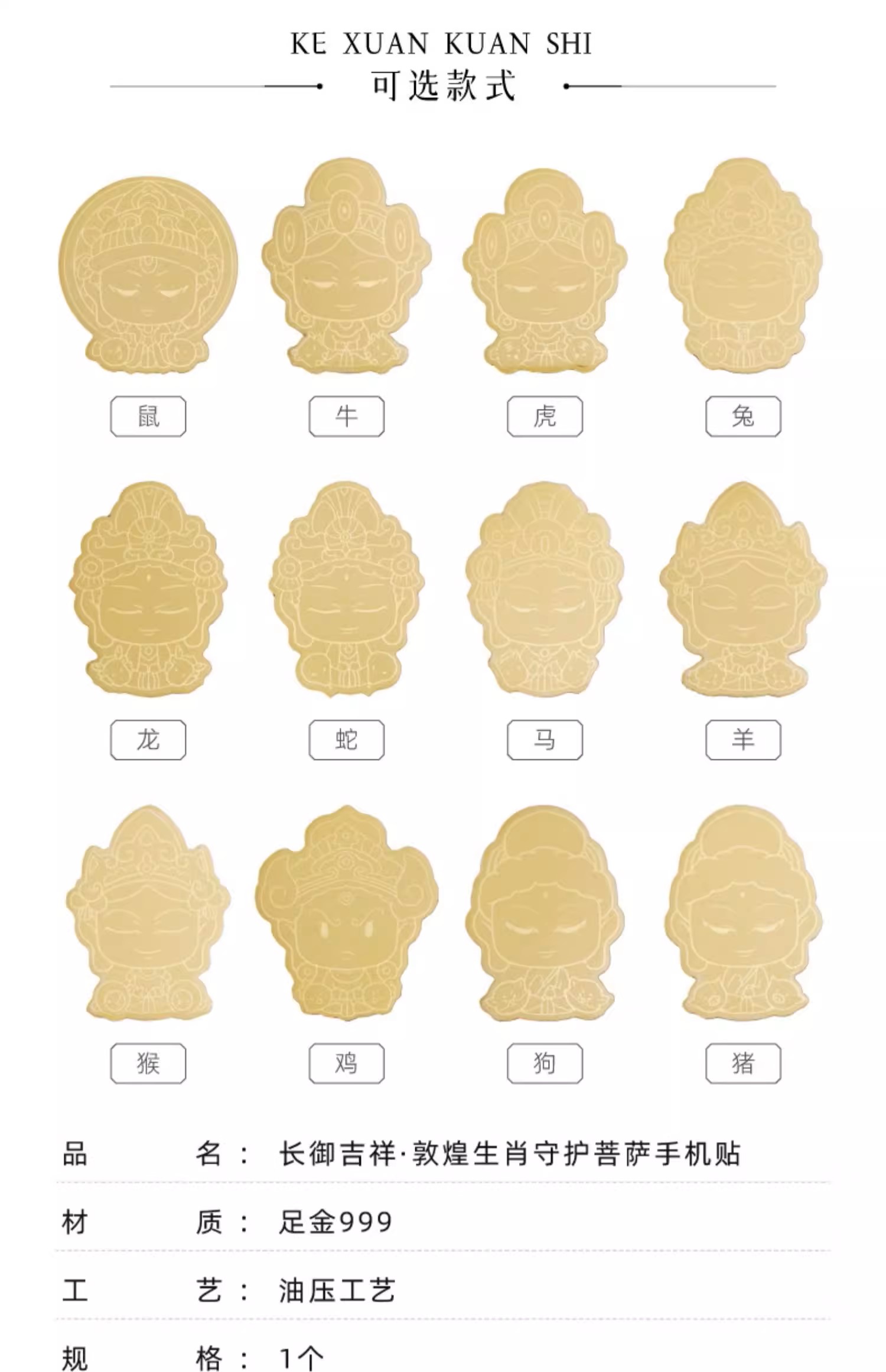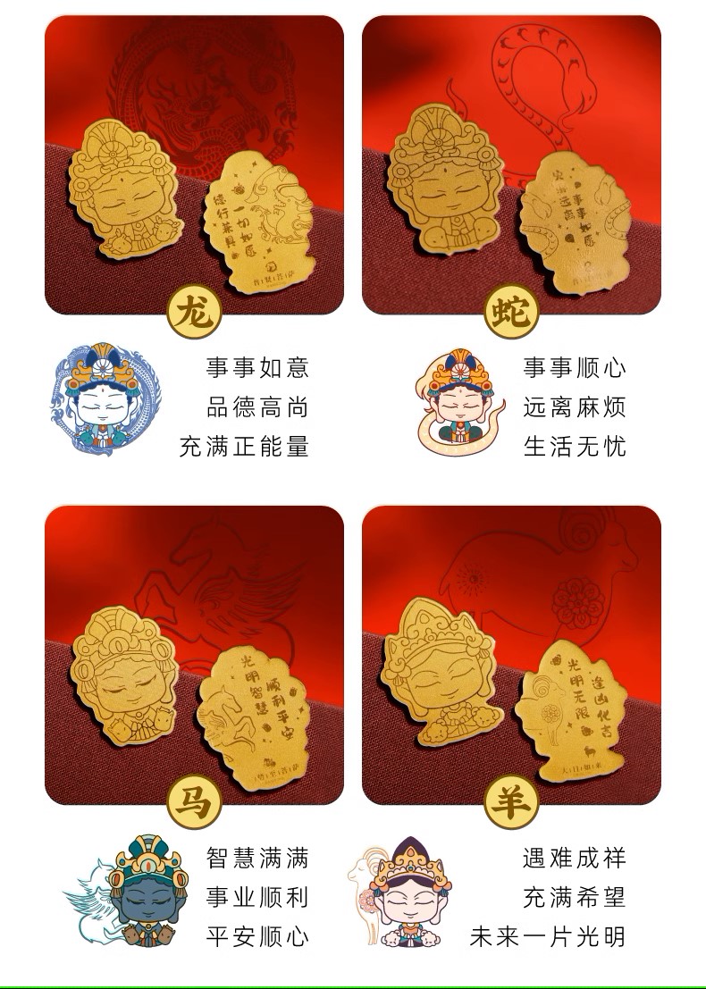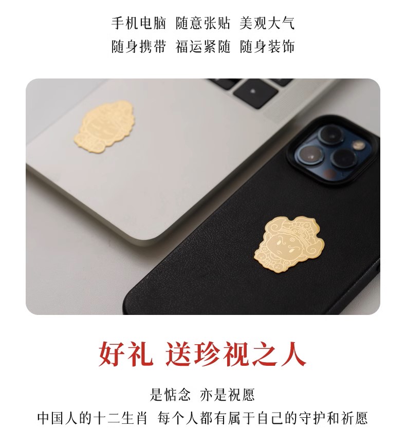 敦煌研究院 生肖守护菩萨手机贴 黄金足金999贴饰生日礼物纪念品