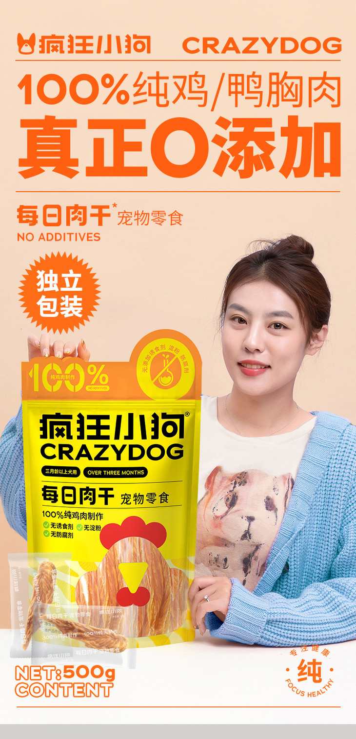 【拍下立减10元】疯狂小狗 每日大肉干鸡鸭肉干500g 猫狗零食