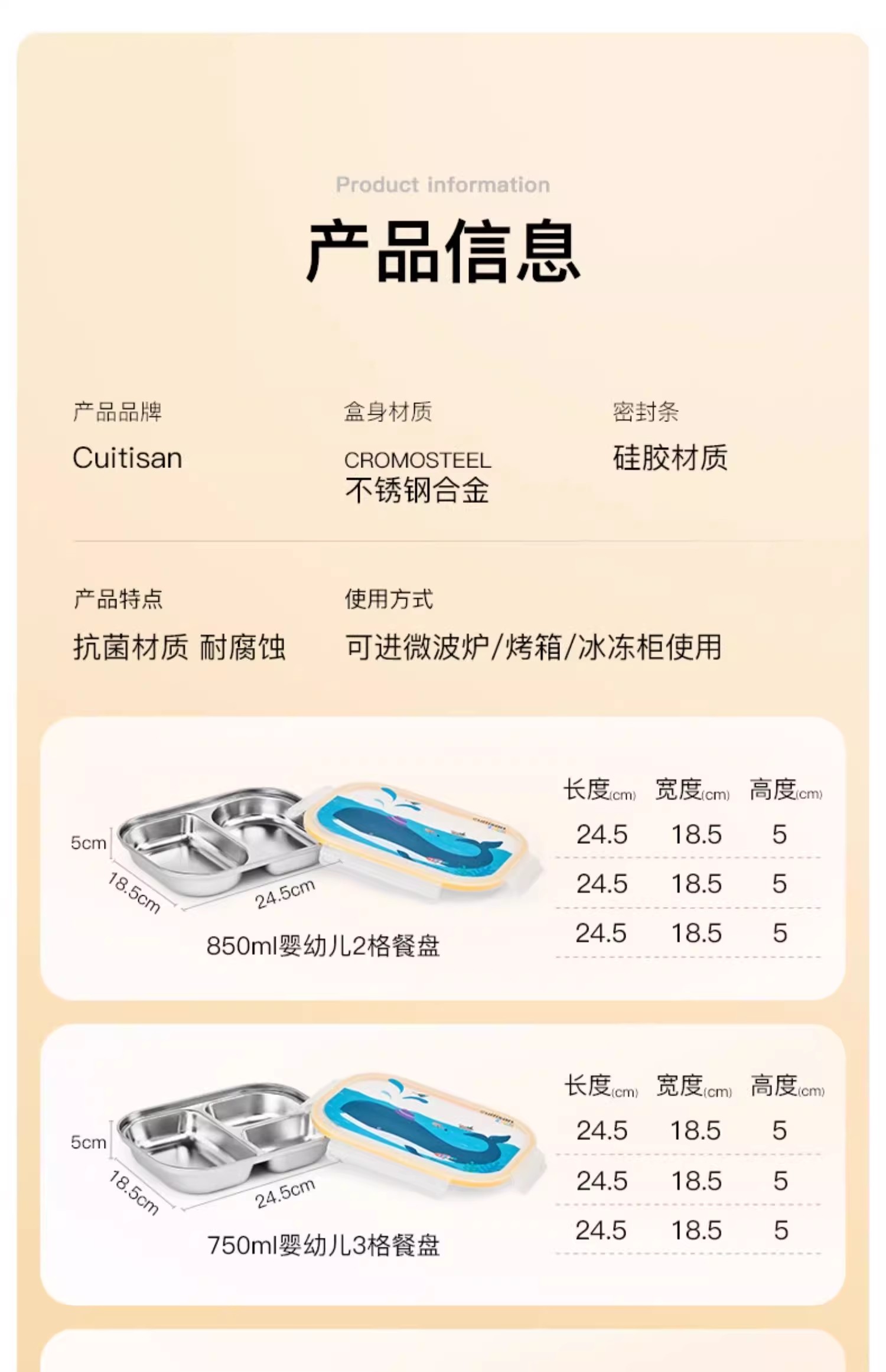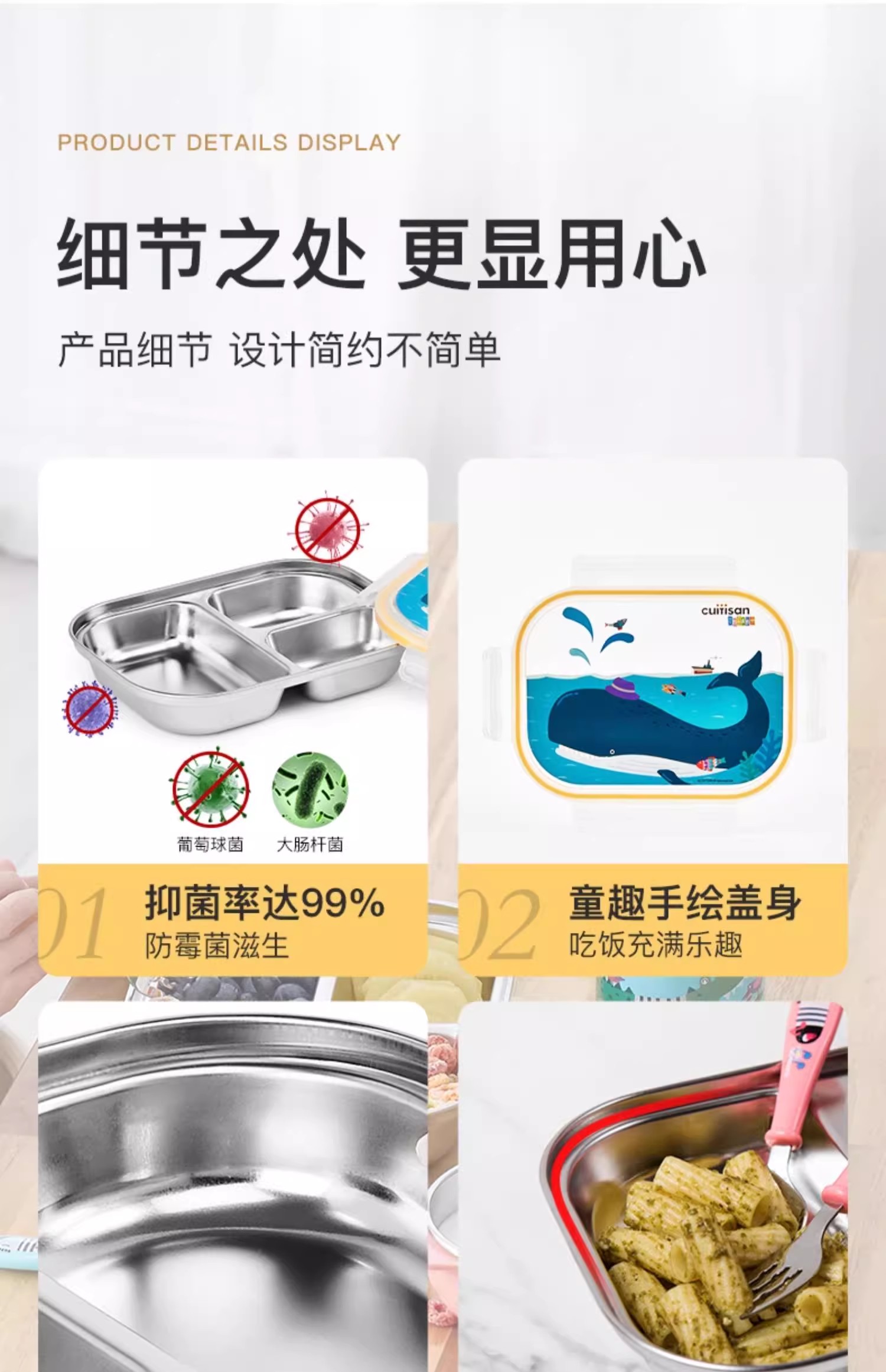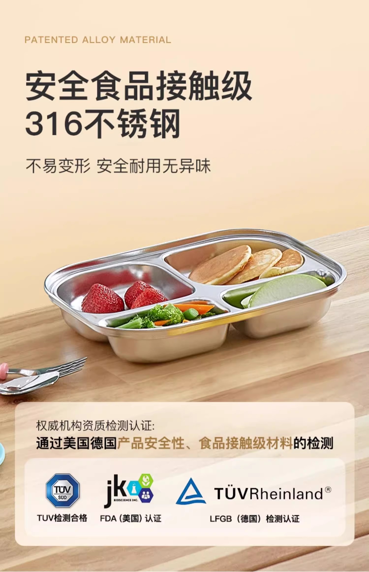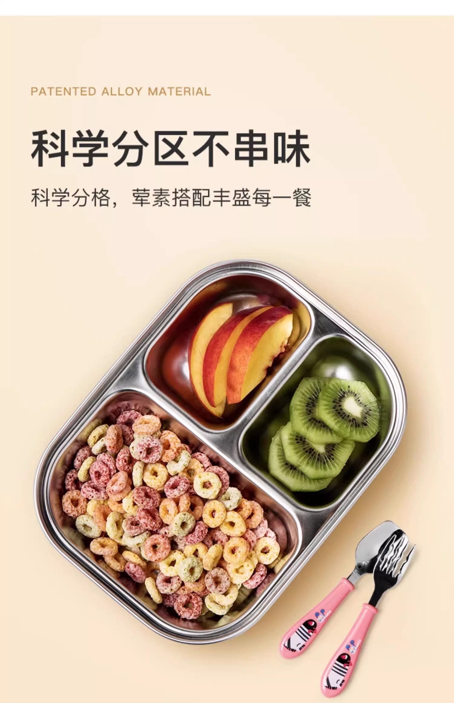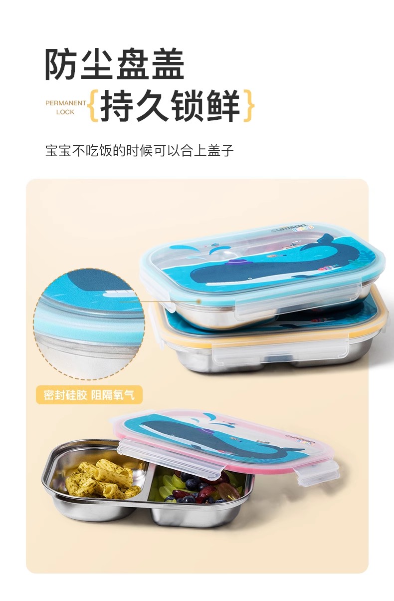 【韩国进口儿童分隔便当餐盒】316不锈钢可微波饭盒分格密封学生专用