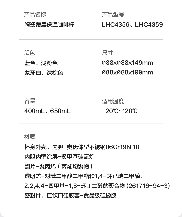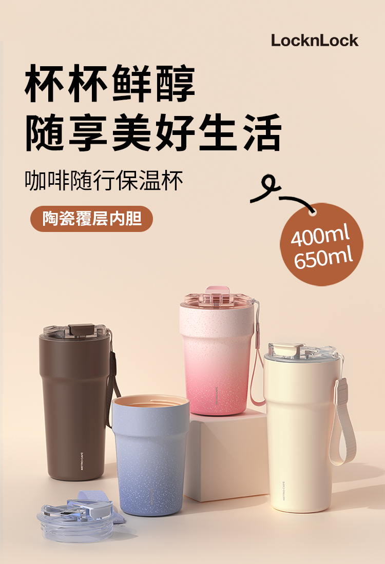 乐扣乐扣保温杯水杯陶瓷覆层内胆316不锈钢咖啡杯LHC4356/LHC4359