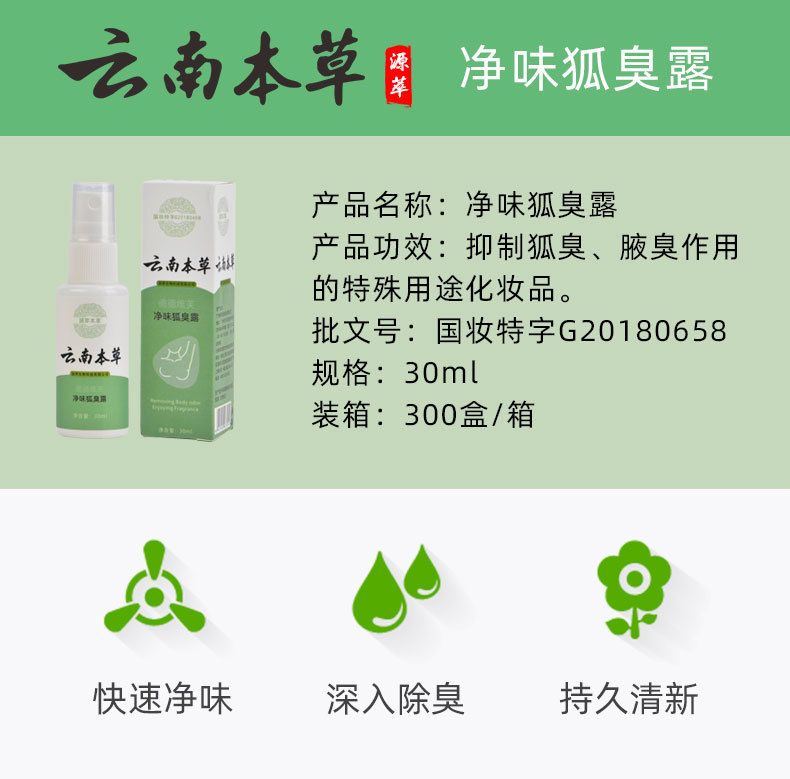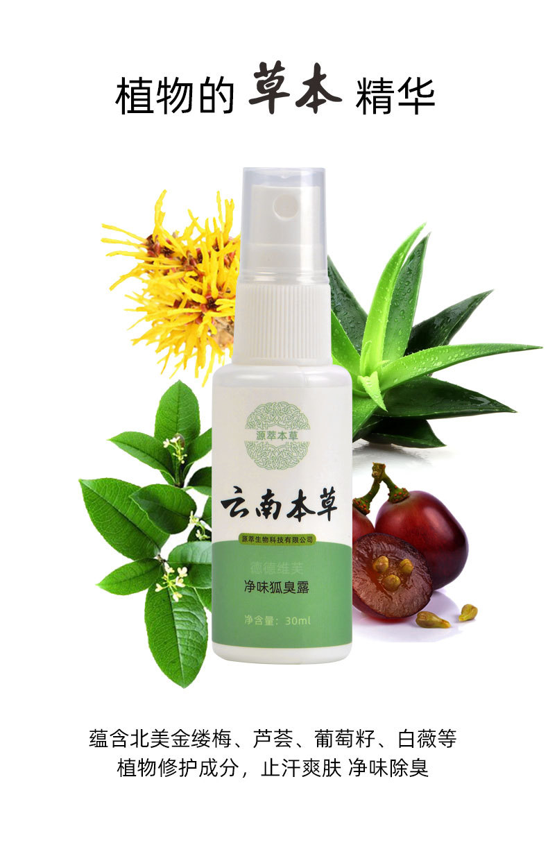 云南本草狐臭喷雾腋下去汗味止汗露狐臭喷雾清香型净味喷雾