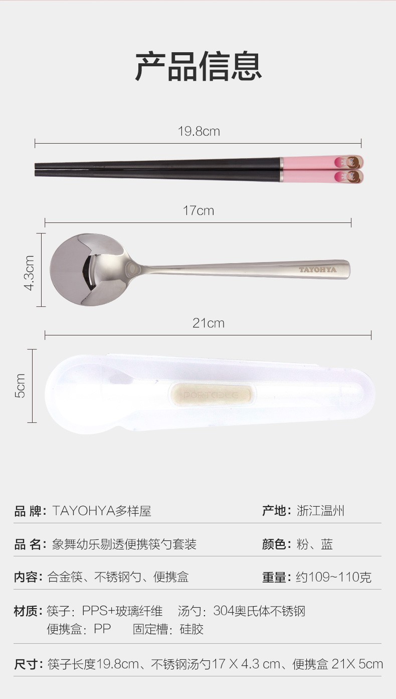 【专柜-多样屋】-合金筷便携筷勺套装 小孩男女吃饭