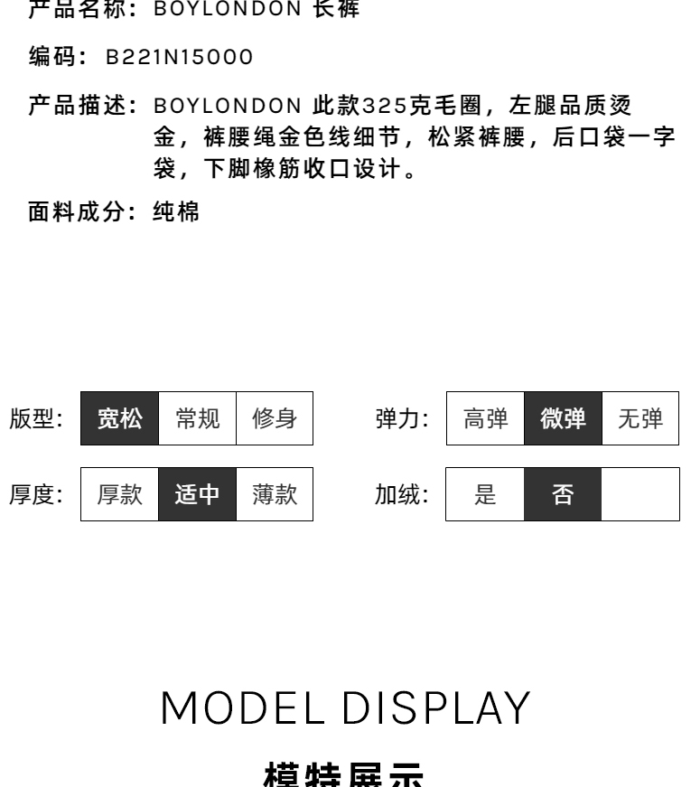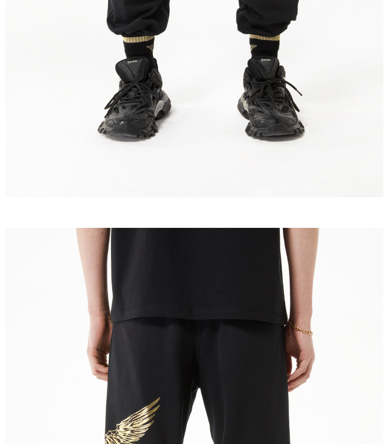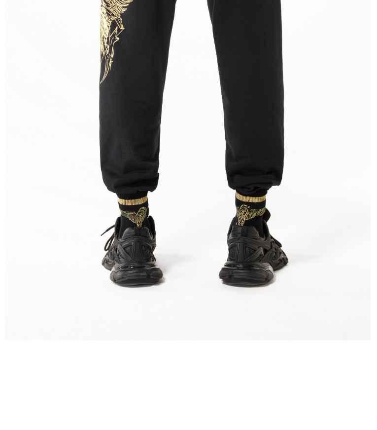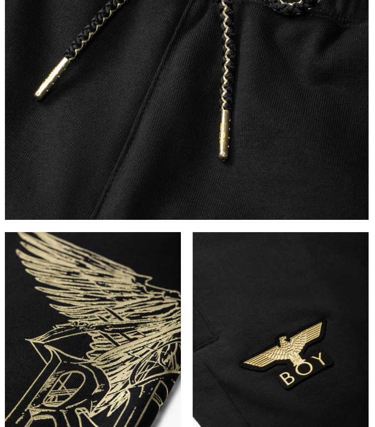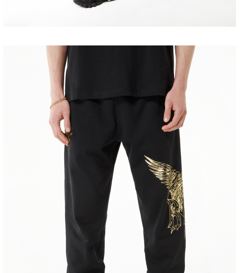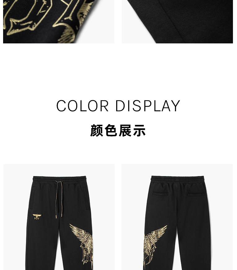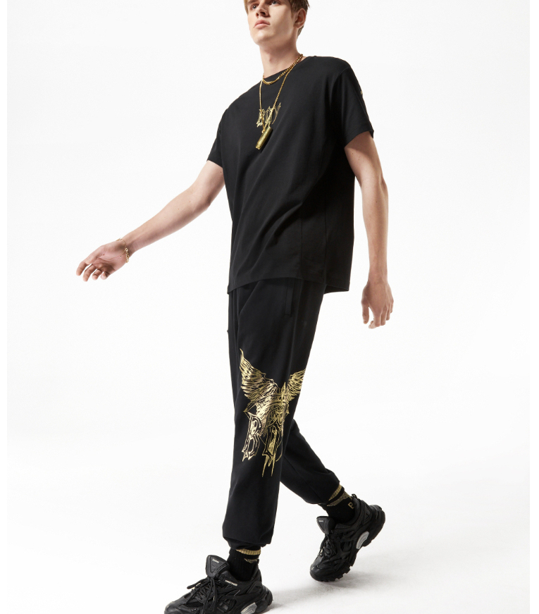BOYLONDON休闲裤男女同款22春夏新品黑金老鹰印花束口长裤B221N1500002