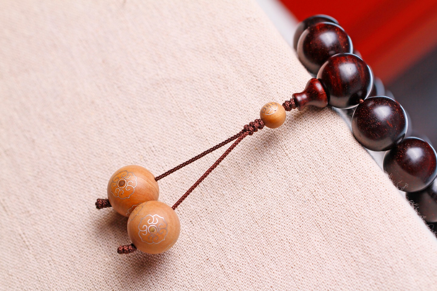 搭配:主珠精选高密度多金星紫檀,吊坠选取2颗老山檀(无缝镶银工艺),细腻温润,质坚若玉,味道沉稳,手感润滑厚重,经典散发古朴韵味。