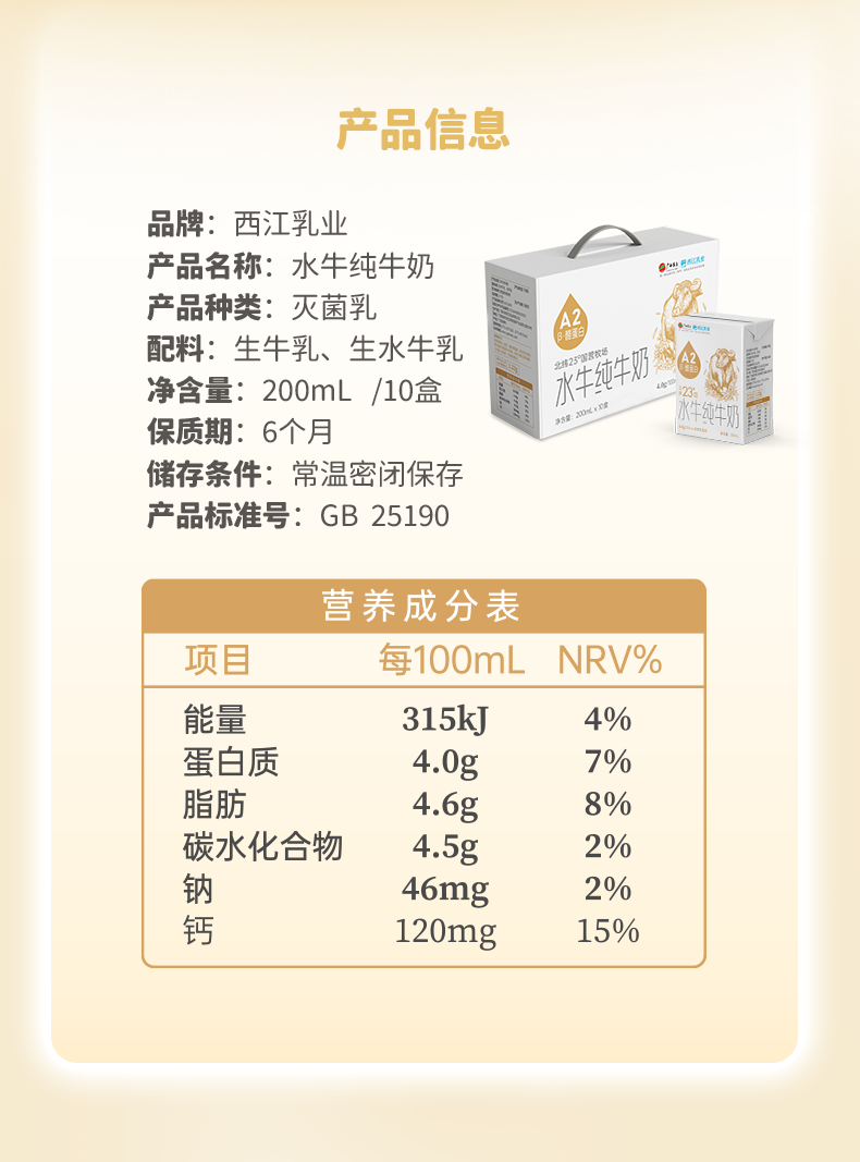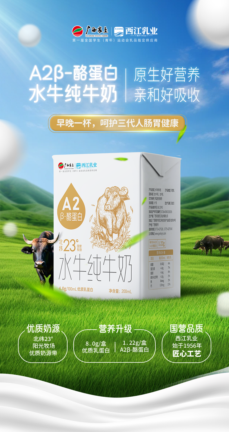 【广西农垦】西江乳业丨A2β酪蛋白水牛纯牛奶 200ml*10盒