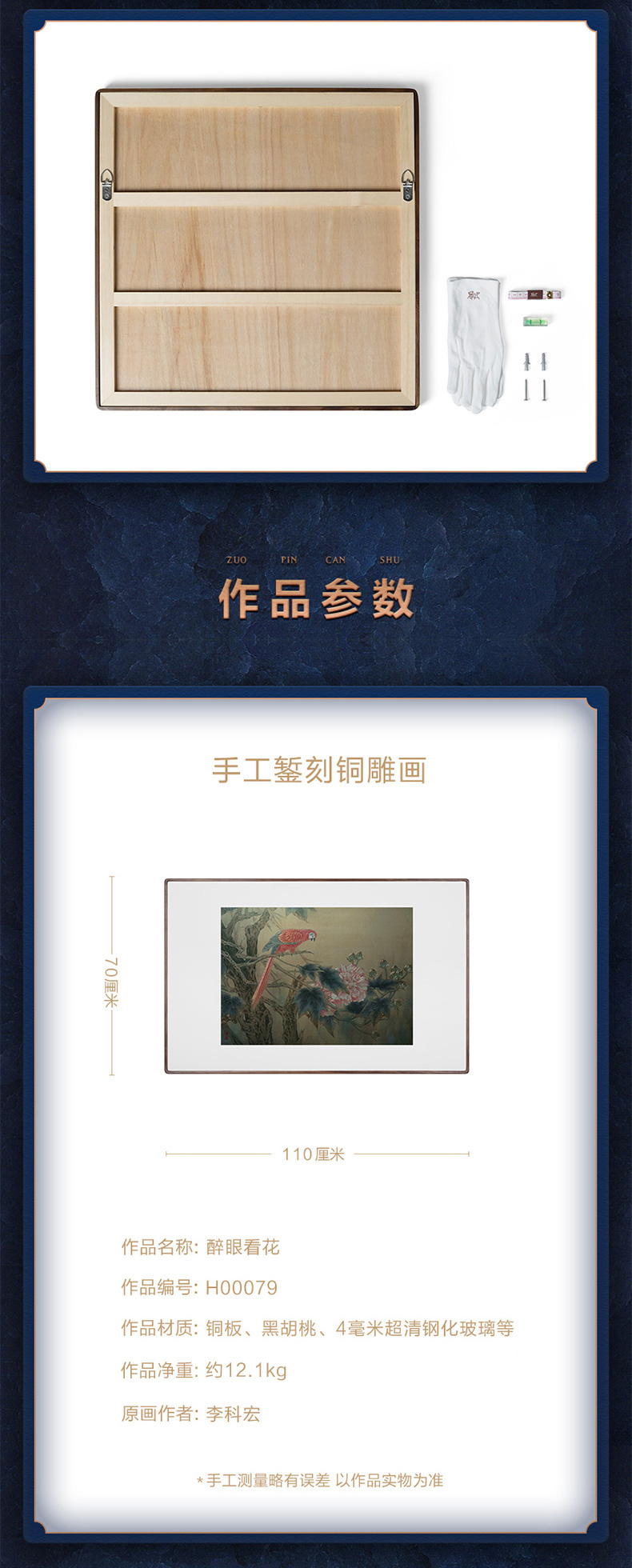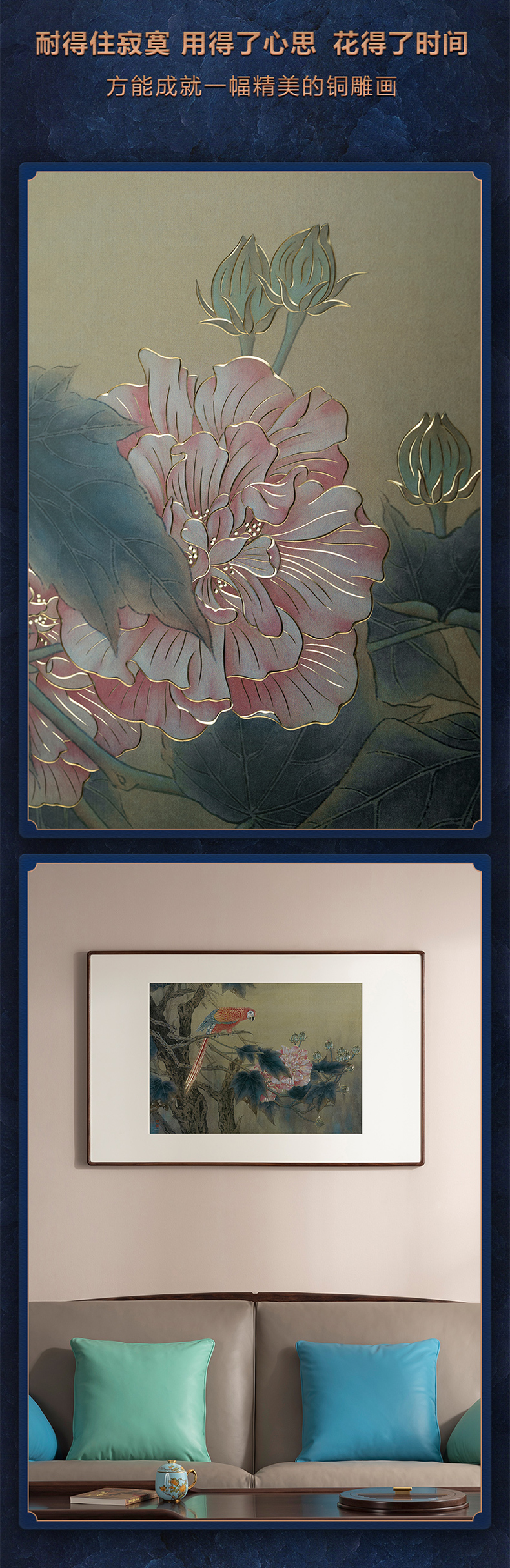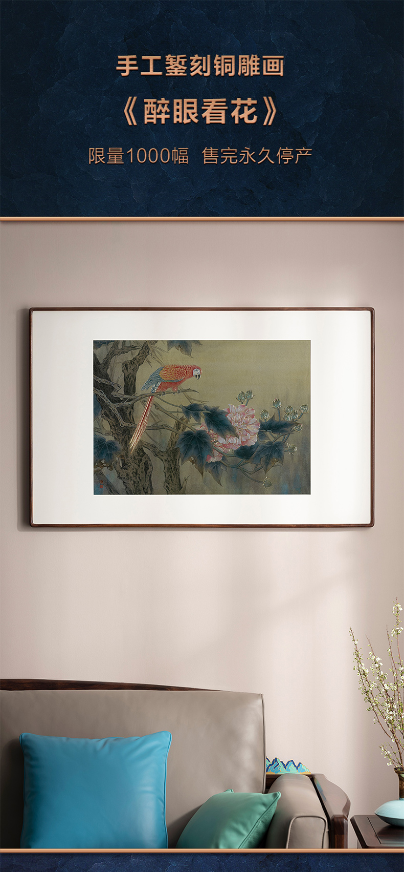 秒杀铜师傅 手工錾刻 铜雕画《醉眼看花》装饰画 玄关画 背景画 壁画