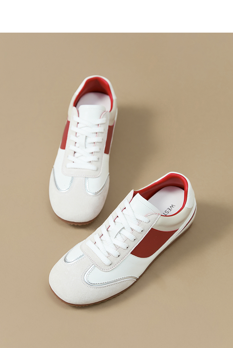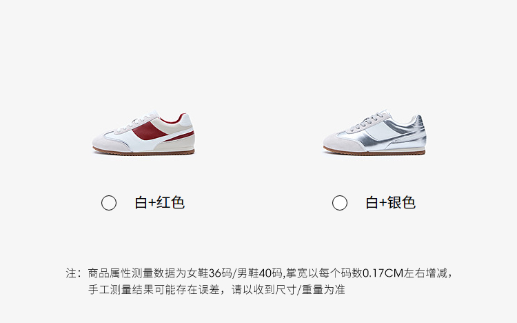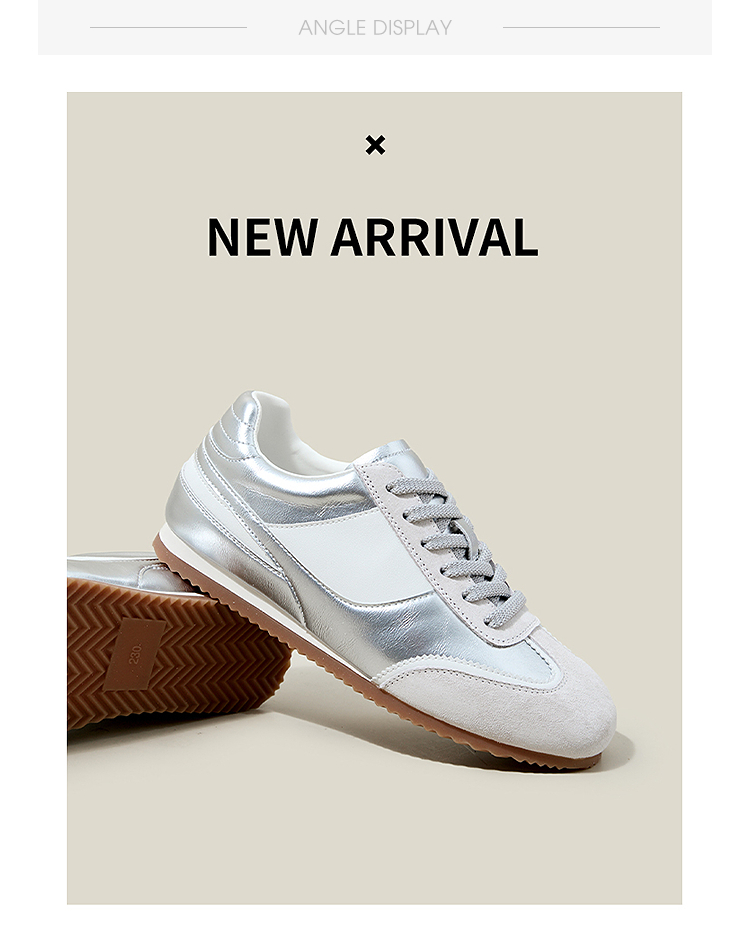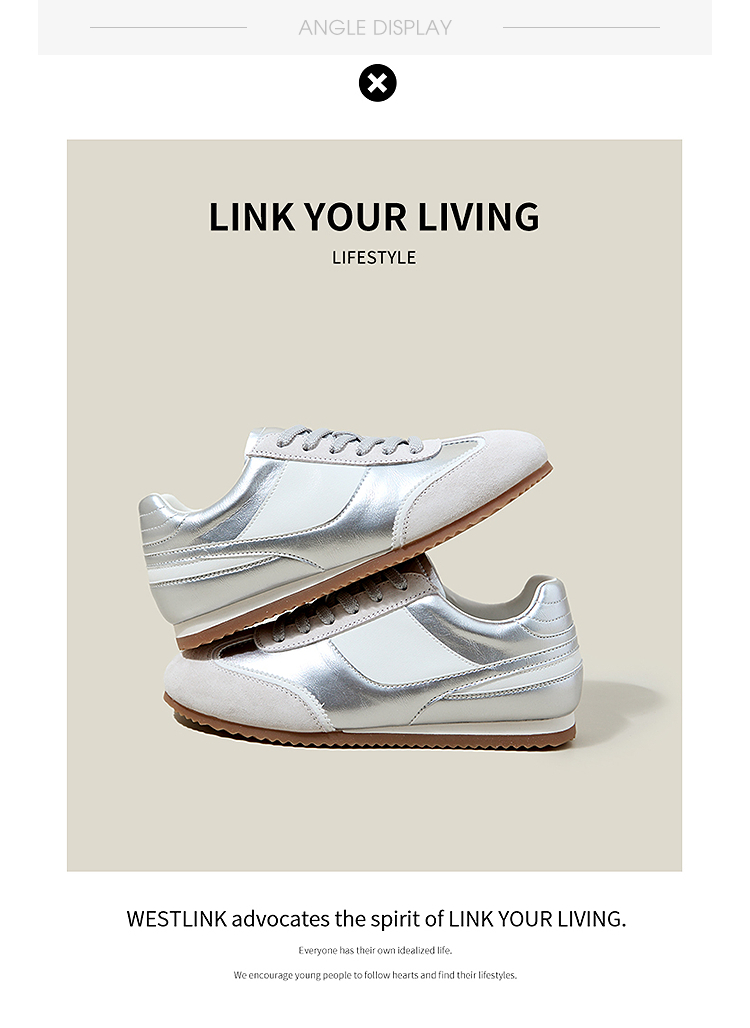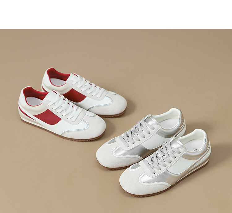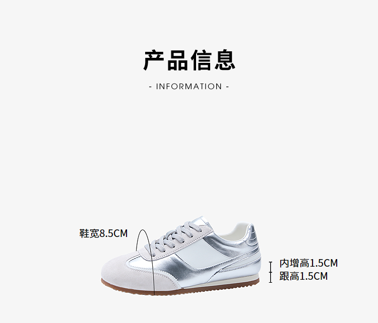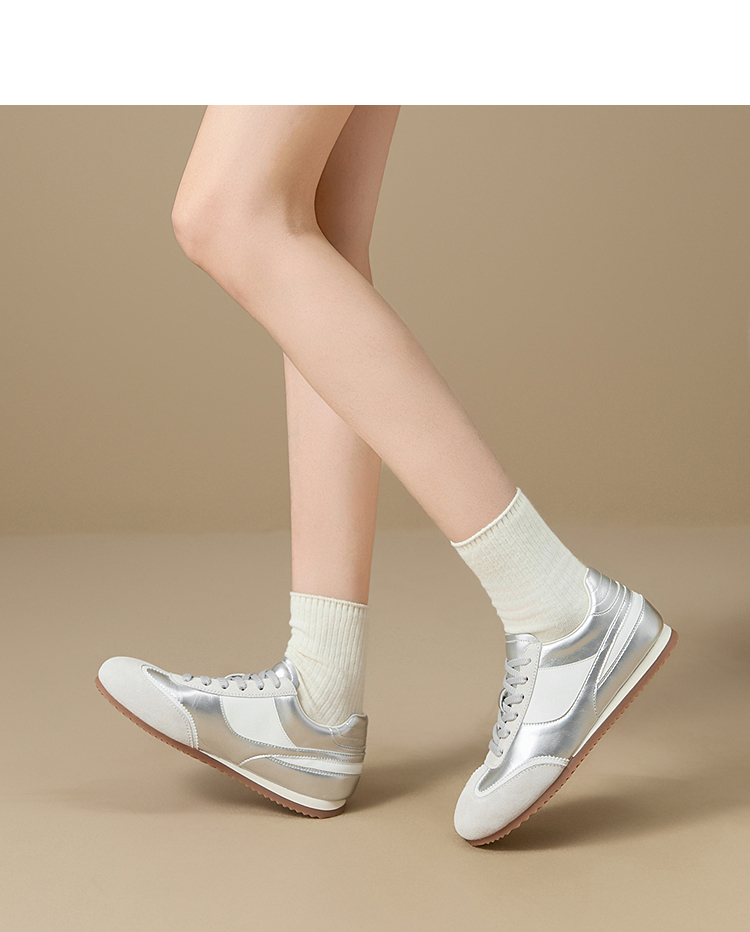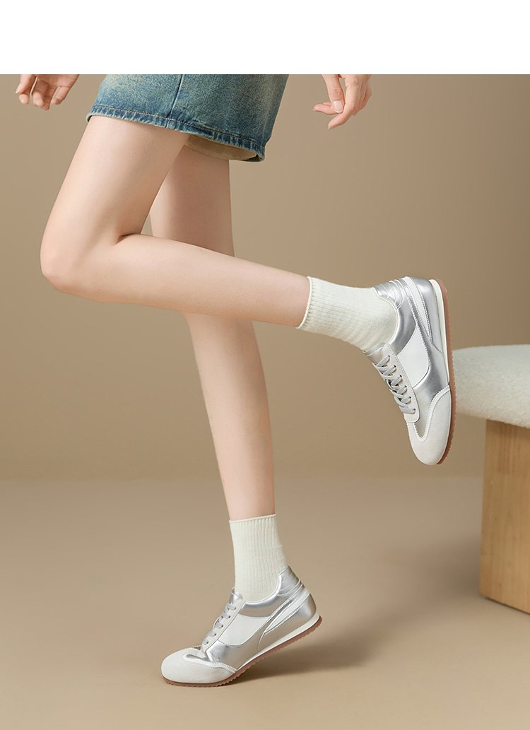 西遇平底德训鞋女新款秋季复古小白鞋轻便薄底银色休闲运动鞋V1656961