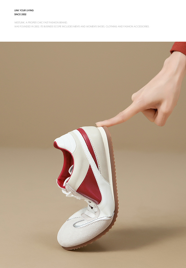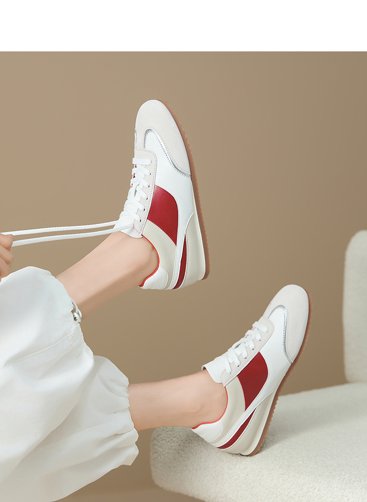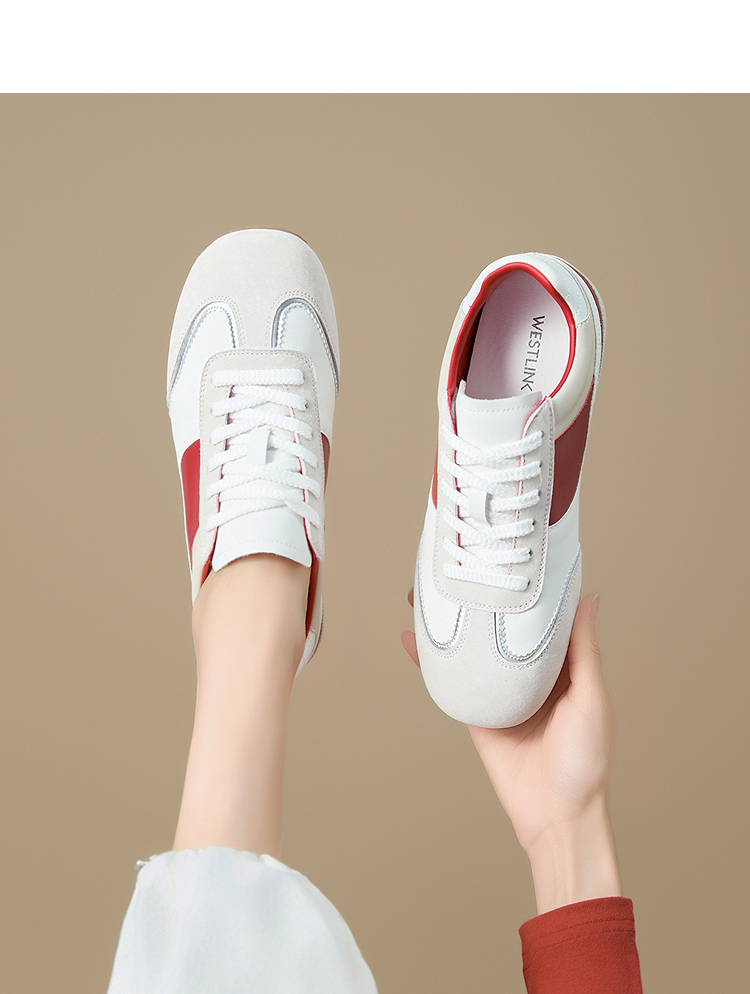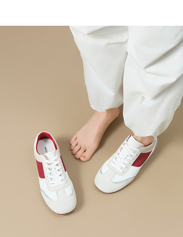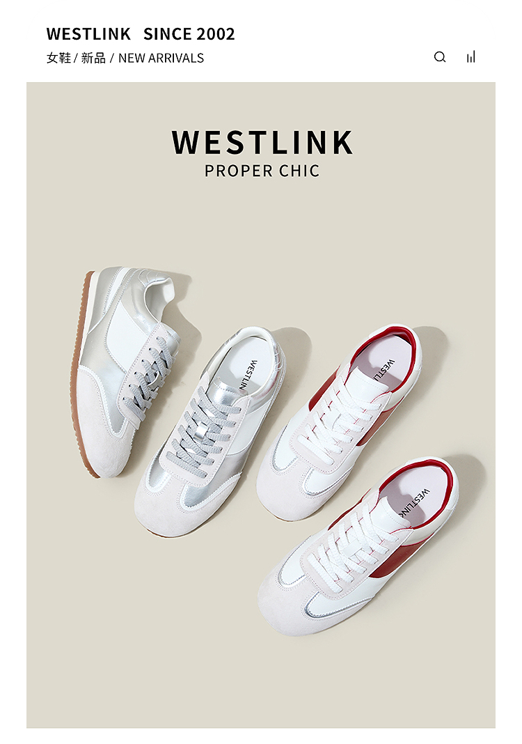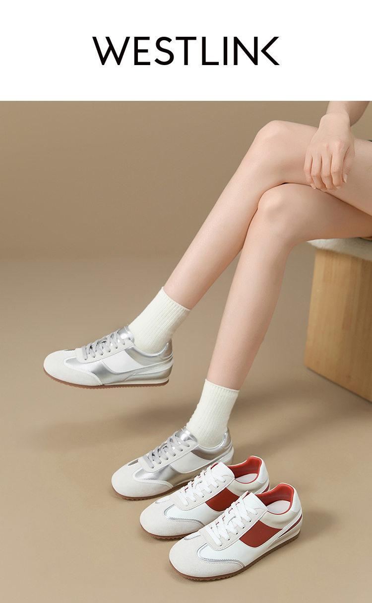 西遇平底德训鞋女新款秋季复古小白鞋轻便薄底银色休闲运动鞋V1656961