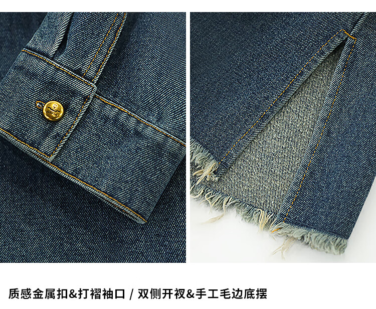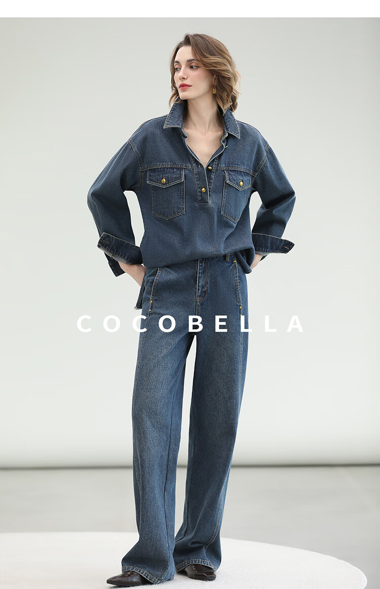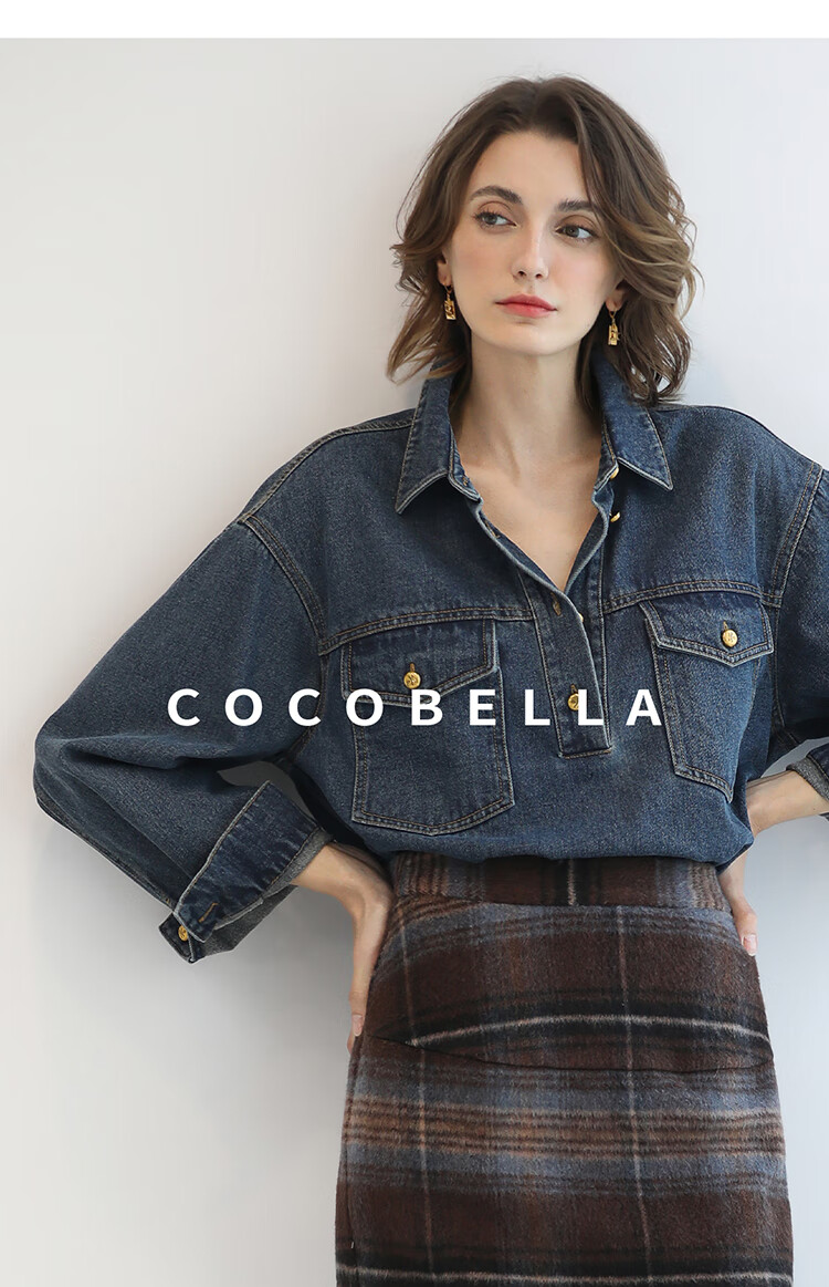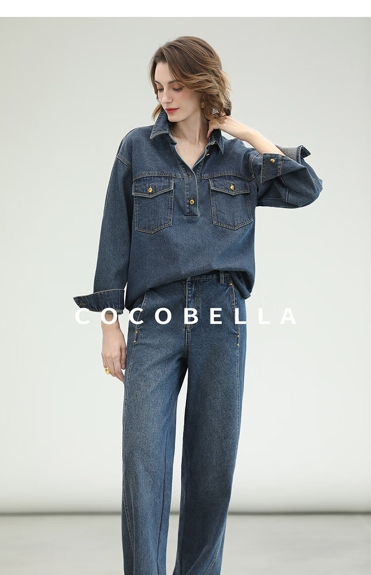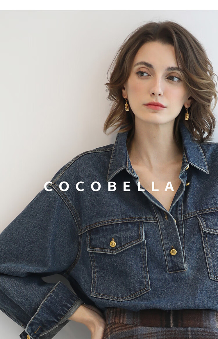 【限时秒杀】COCOBELLA环保水洗手工毛边原色牛仔衬衫金扣内搭衬衣DN3005