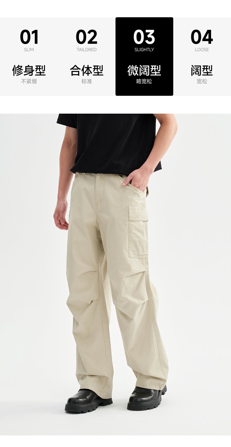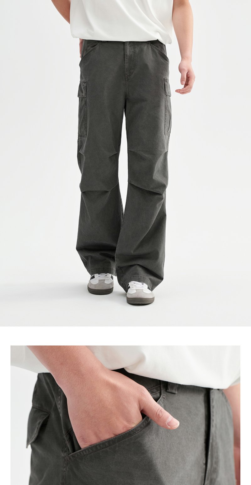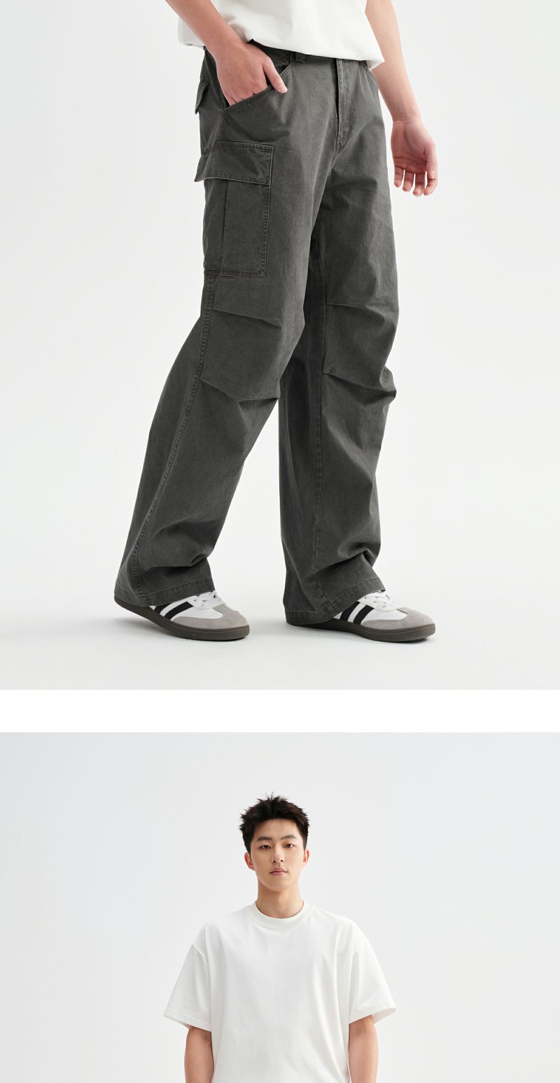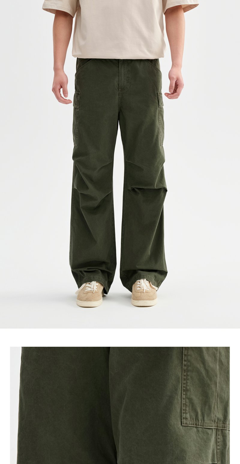 CHINISM赤尘 膝部双褶工装裤男2025夏季纯棉酵洗伞兵裤男士休闲裤
