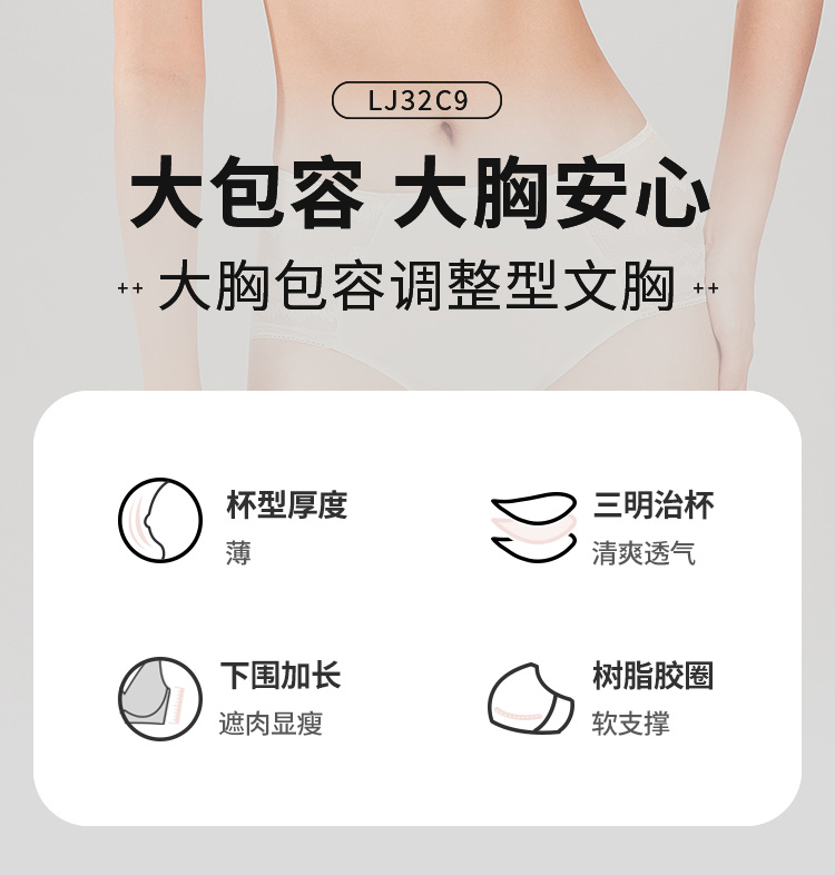 都市丽人舒软挺塑调整型内衣CD薄3/4杯蕾丝塑身文胸四排树脂胶圈LJ32C9