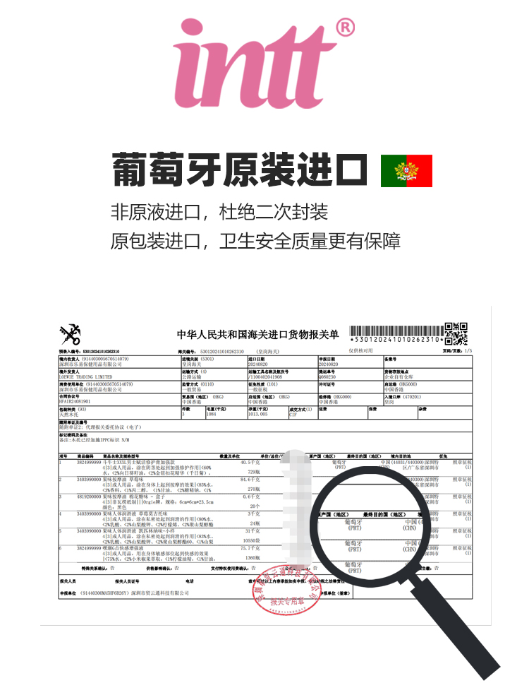 葡萄牙原装intt 果味情趣按摩精油30ml