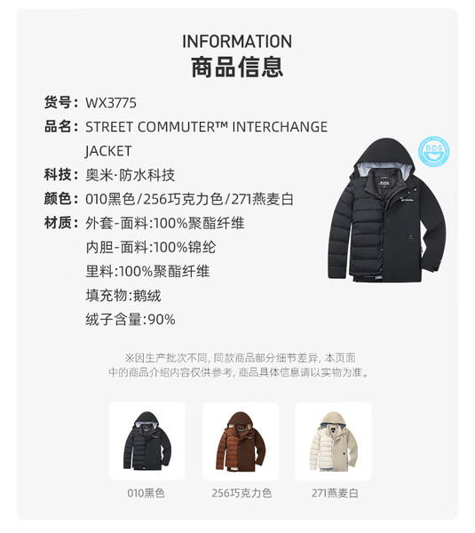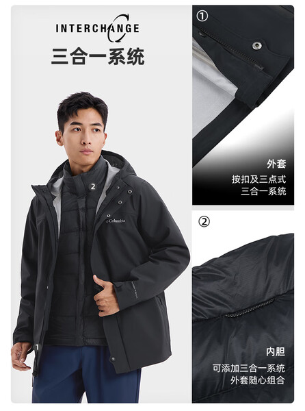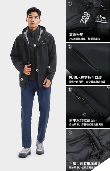 哥伦比亚穿行系列--男式羽绒内胆三合一外套WX3775