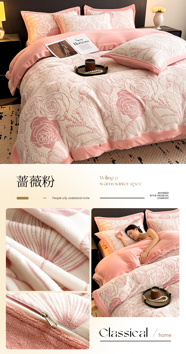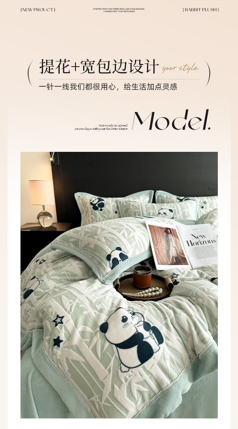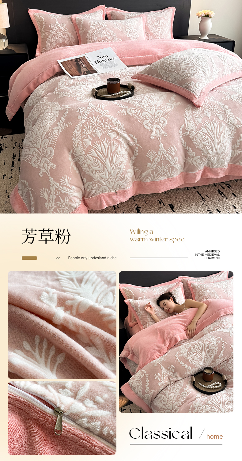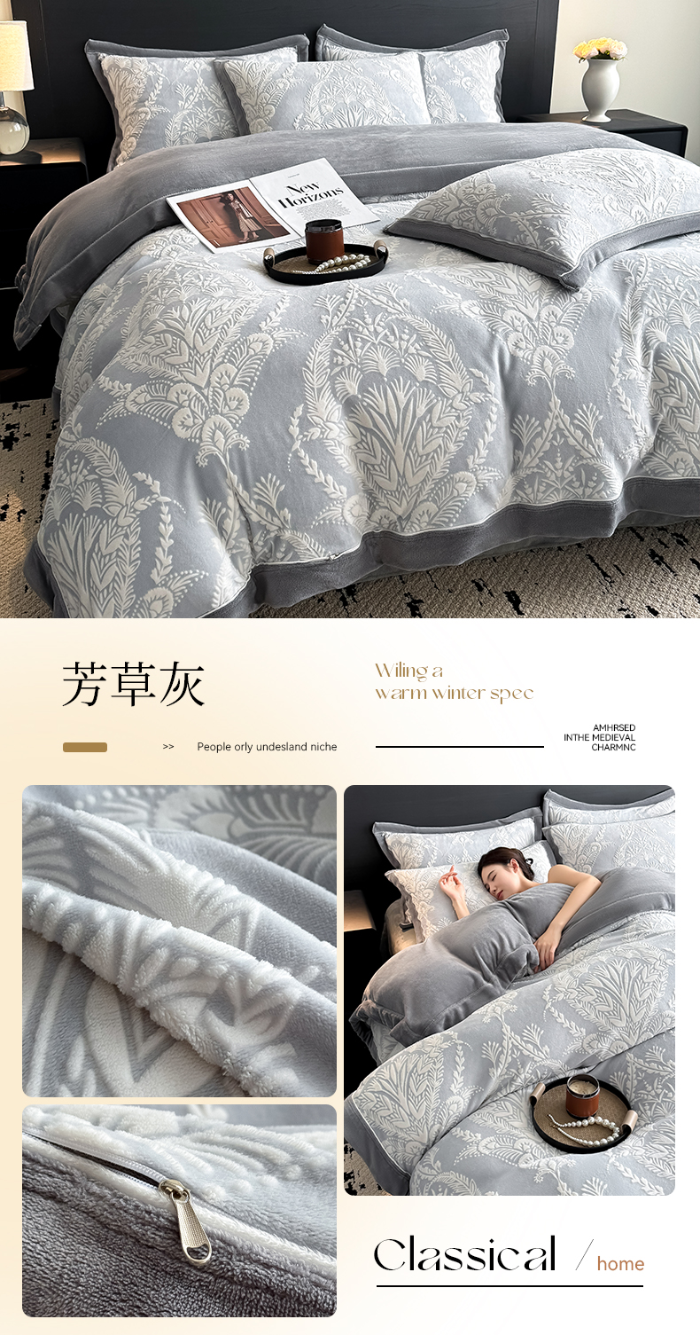 自然醒A类高克重5D立体浮雕宽边牛奶绒被套单件冬季双面珊瑚绒加厚被罩 QJ