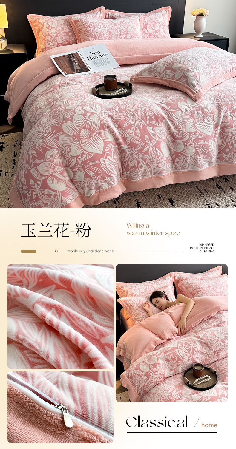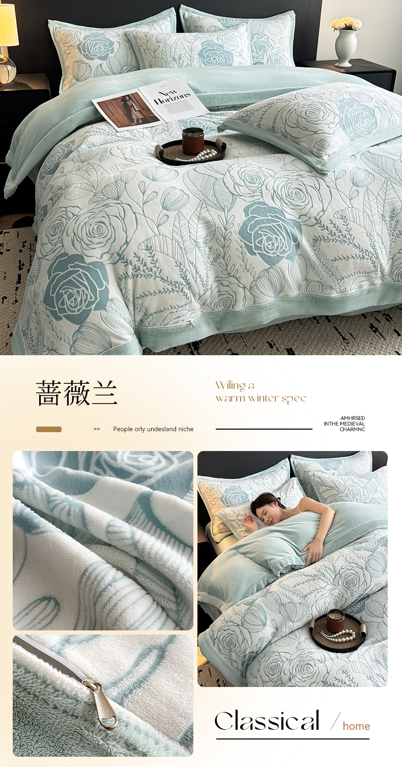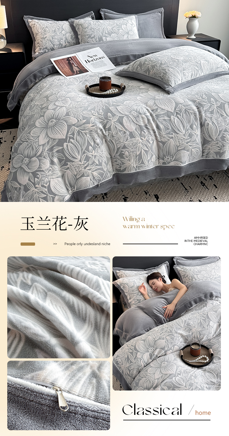 自然醒A类高克重5D立体浮雕宽边牛奶绒被套单件冬季双面珊瑚绒加厚被罩 QJ