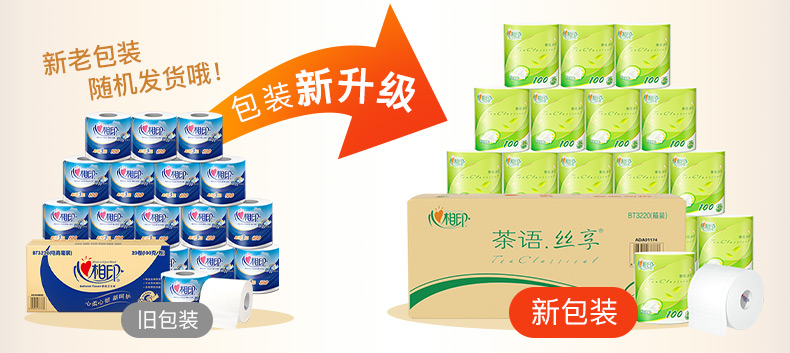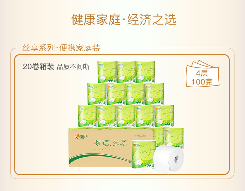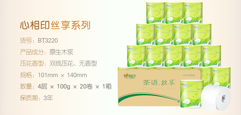 心相印心柔四层卷筒卫生纸100克20粒装 BT3220(箱装) 绵柔厚实 方便截取