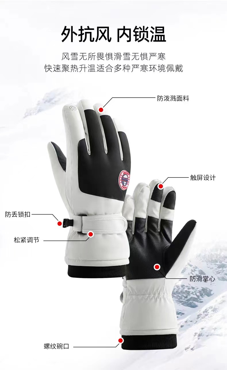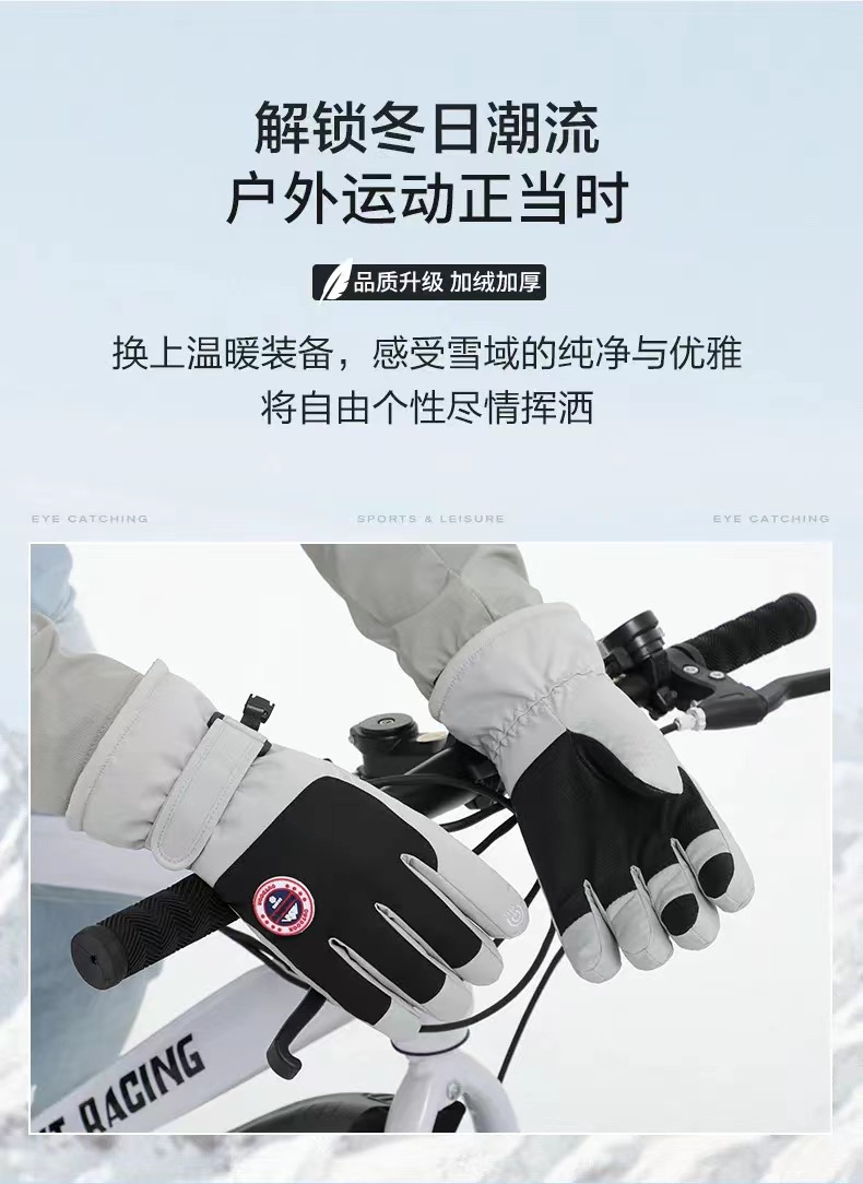 滑雪手套冬季加绒加厚可触屏保暖登山防水手套户外骑行电瓶车手套