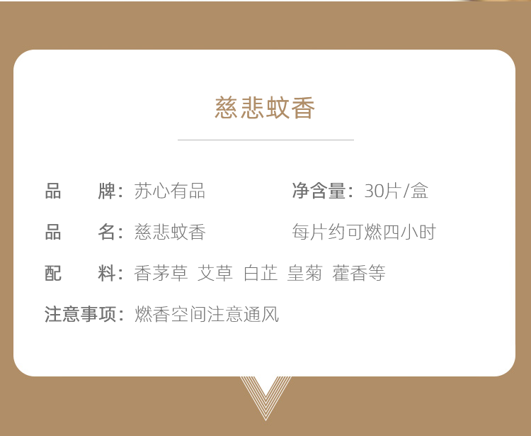 【苏心香品】慈悲蚊香 天然合香 香气怡人 有效驱蚊