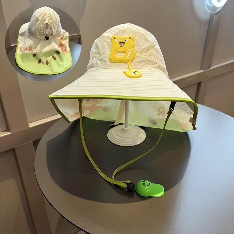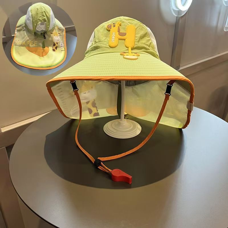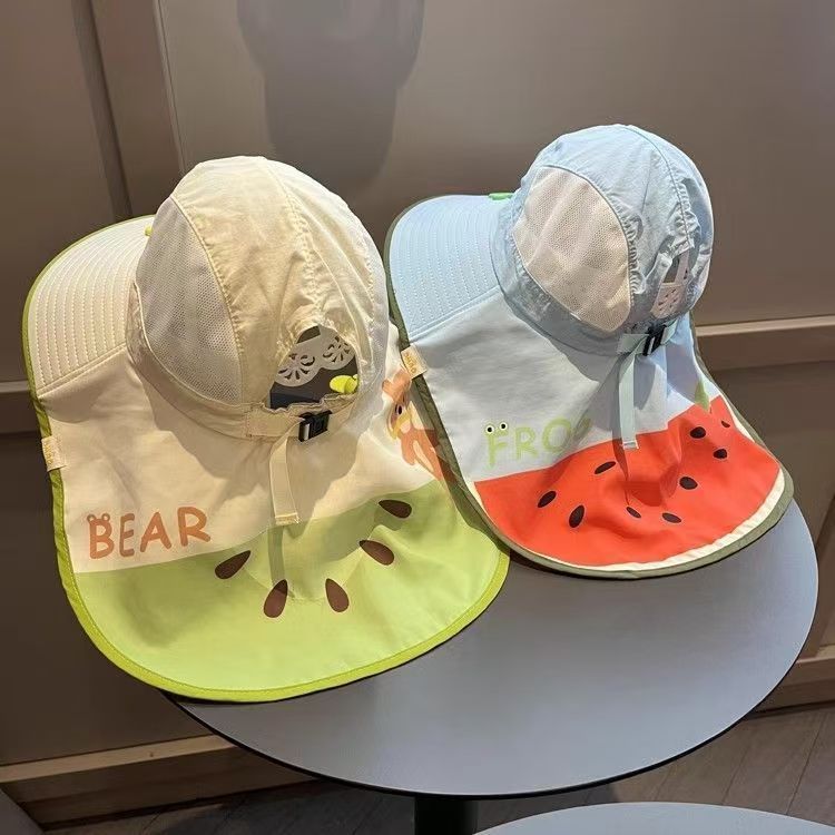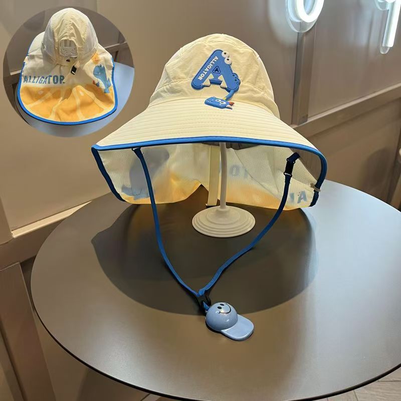 大帽檐儿童防晒帽 夏季宝宝帽子遮阳帽 男童女童渔夫帽太阳帽披肩帽