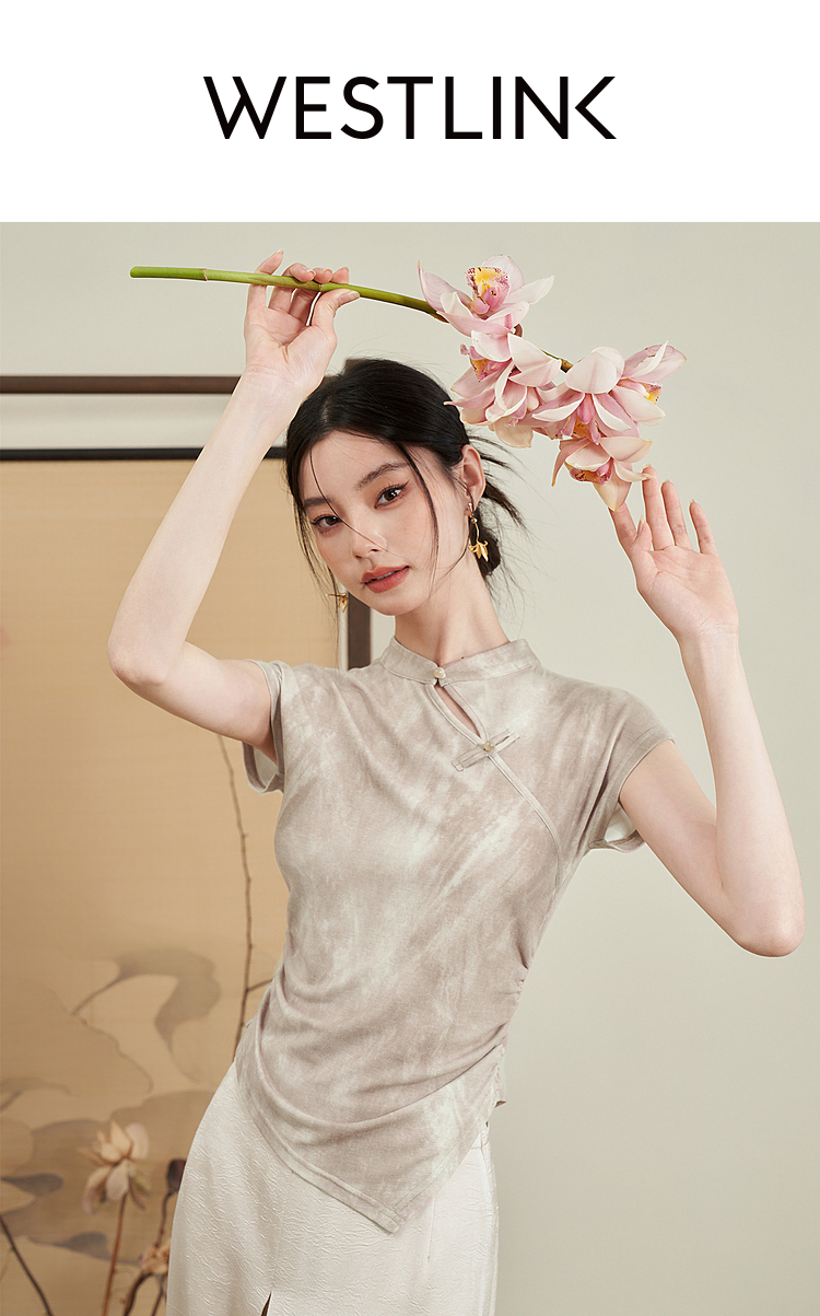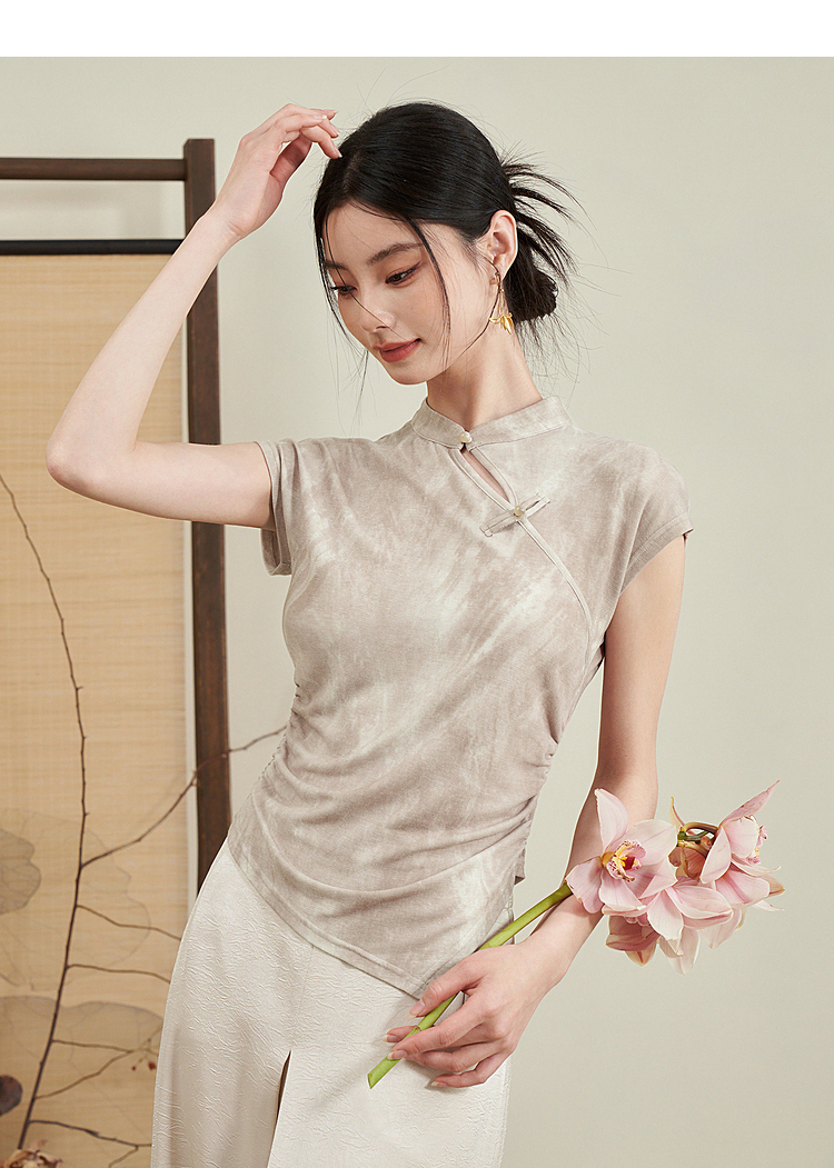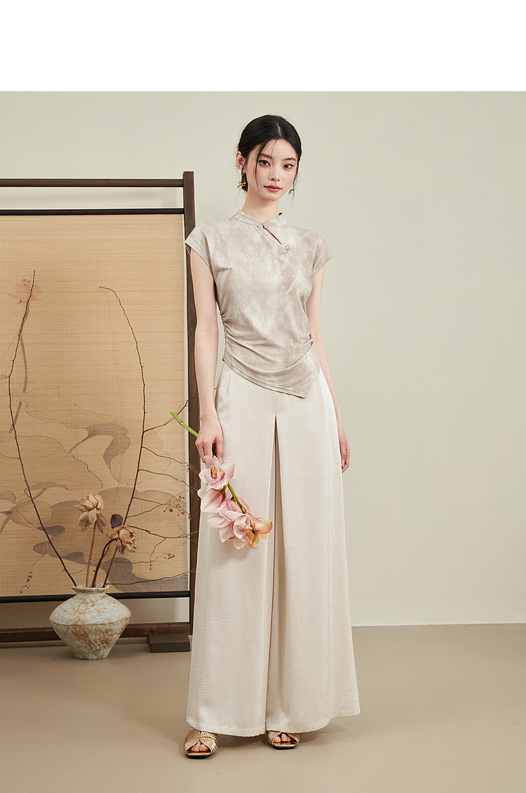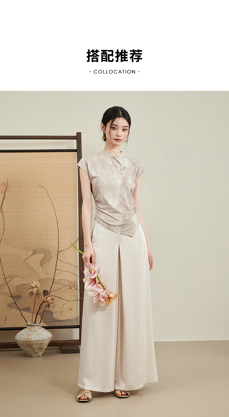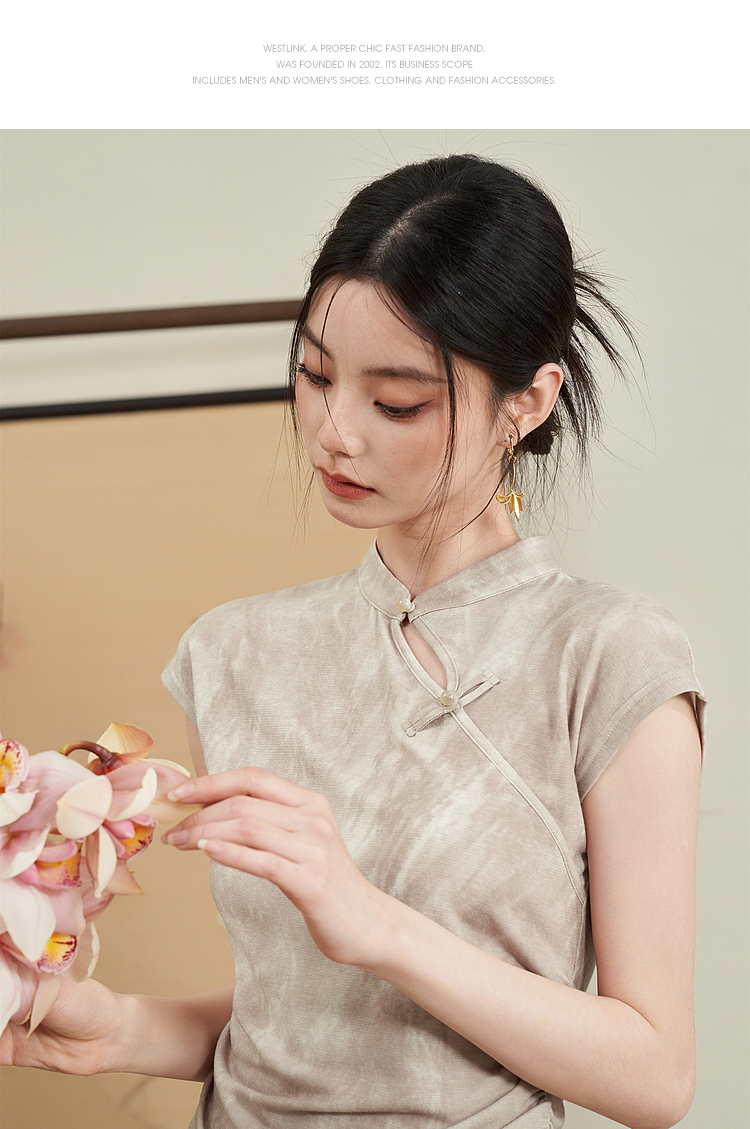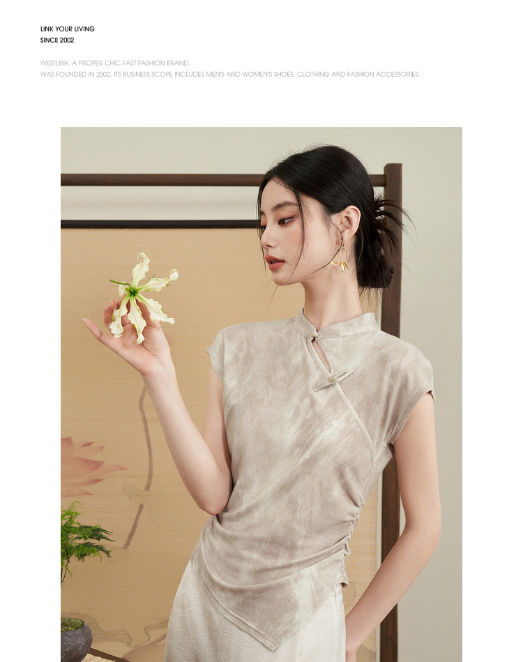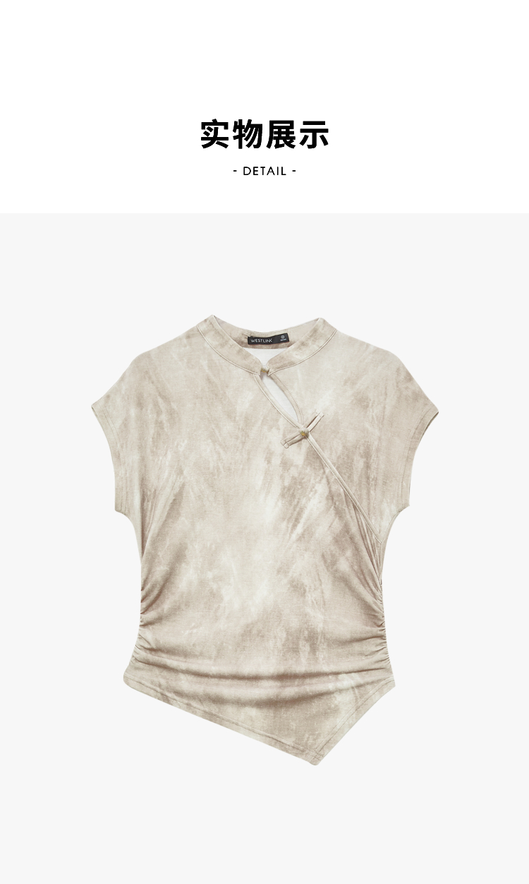 西遇新中式晕染珍珠扣背心女新款设计感褶皱收腰打底衫D0040965
