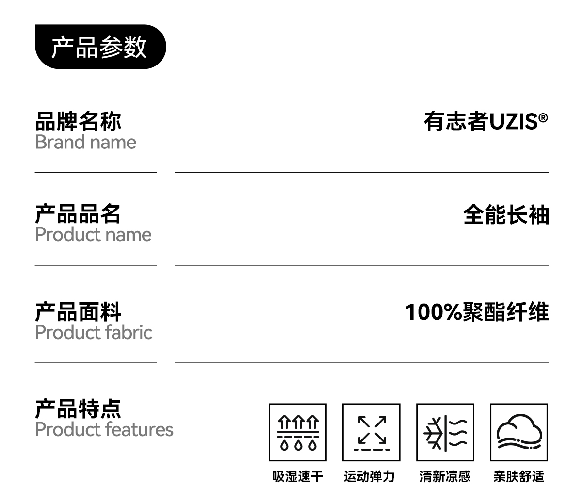 有志者UZIS运动长袖投篮服速干透气训练服全能