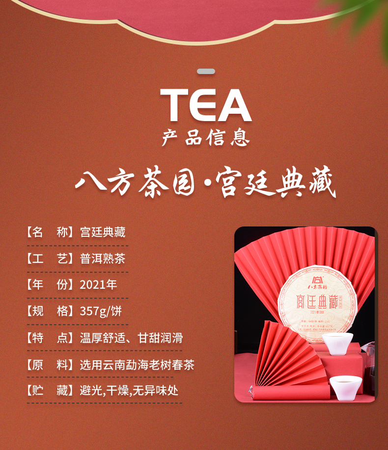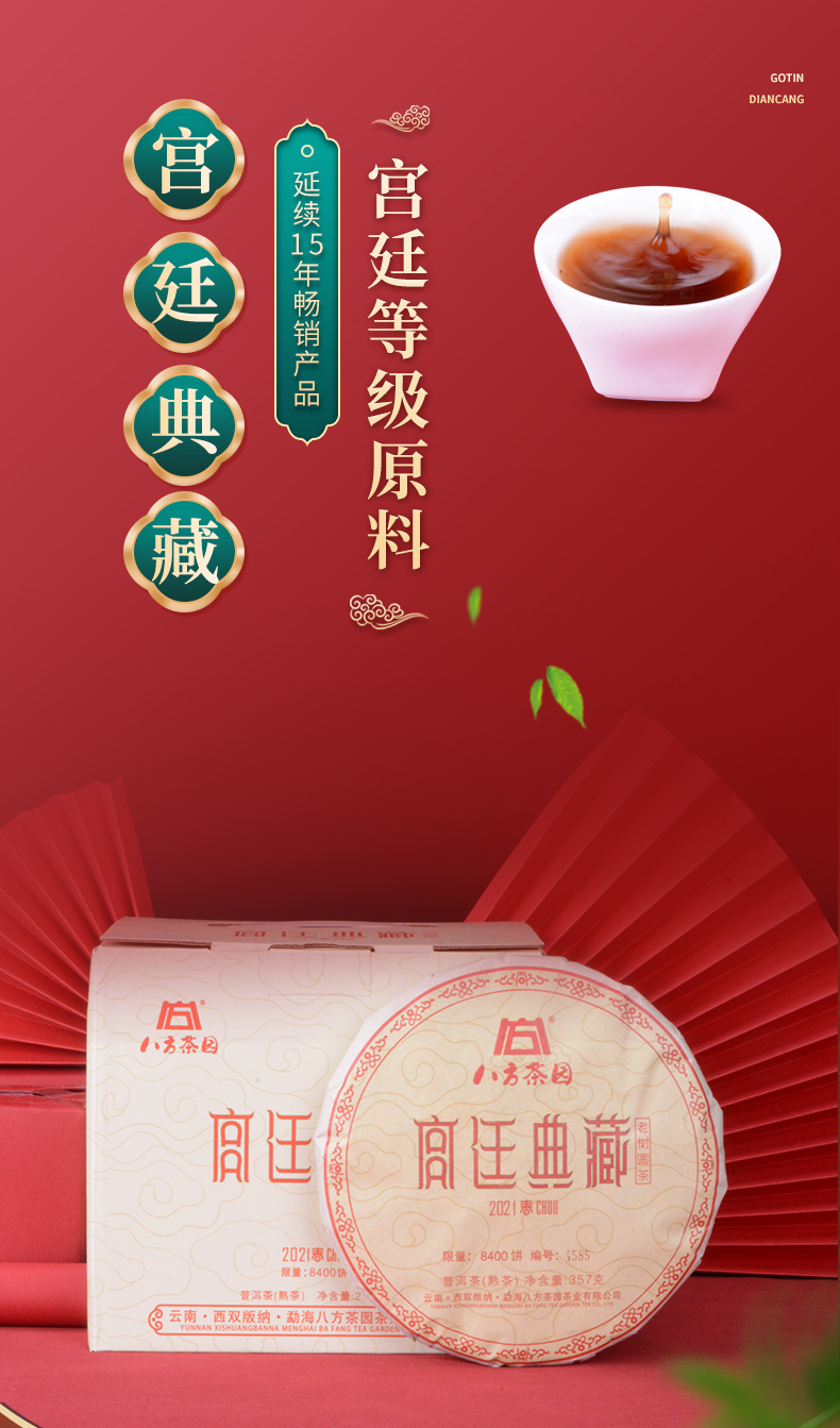 【宫廷典藏】八方茶园 2021 普洱熟茶 老树春茶 357g/饼(天猫同款)