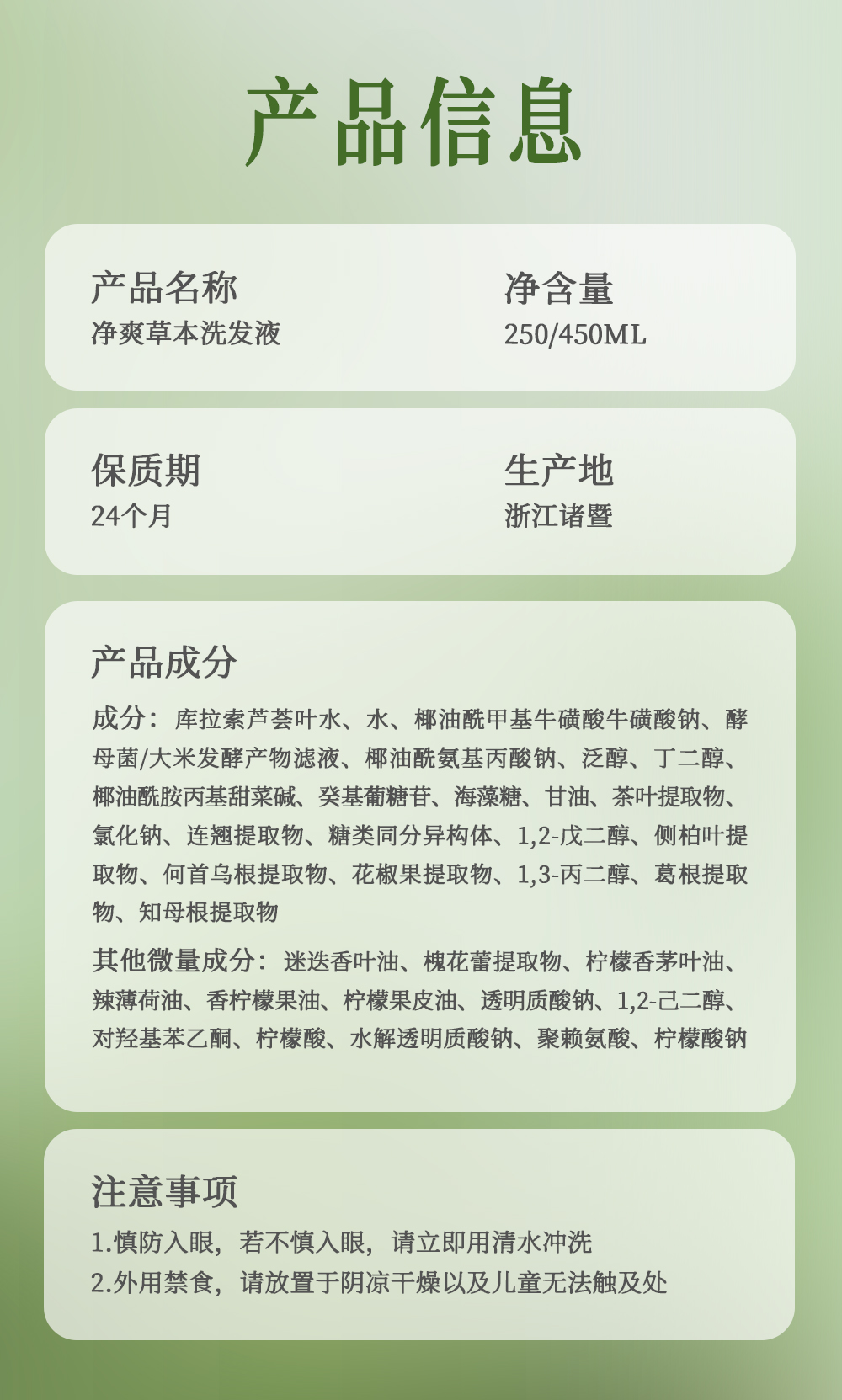 净爽草本洗发液 乐活田园450ml/瓶【京东快递送货上门】
