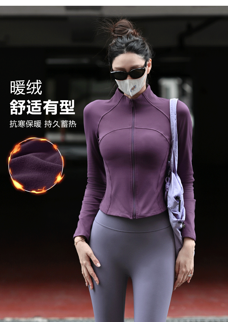 Beemen秋冬磨绒加厚瑜伽外套女 立领防风锁温 3D 修身剪裁藏肉显腰线 健身跑步穿 显瘦不臃肿