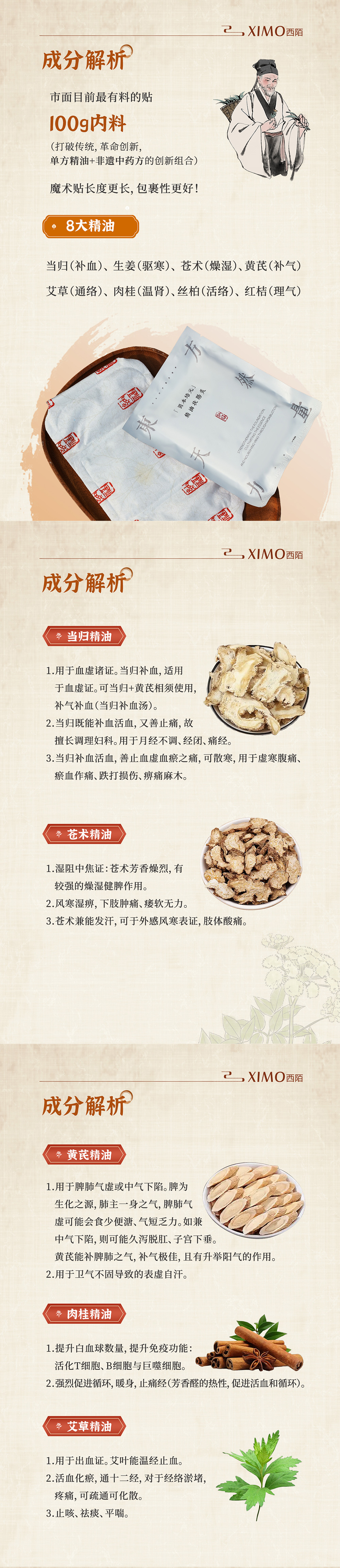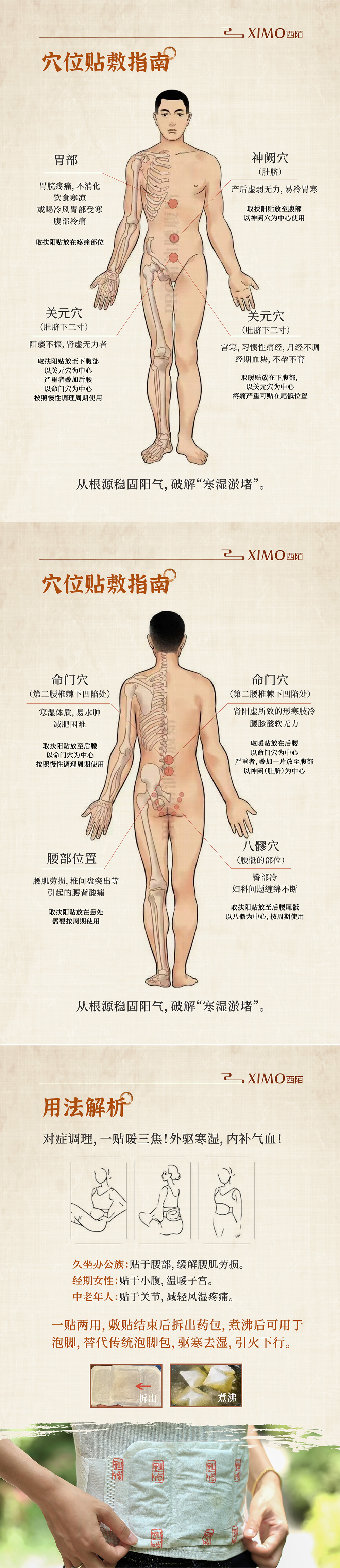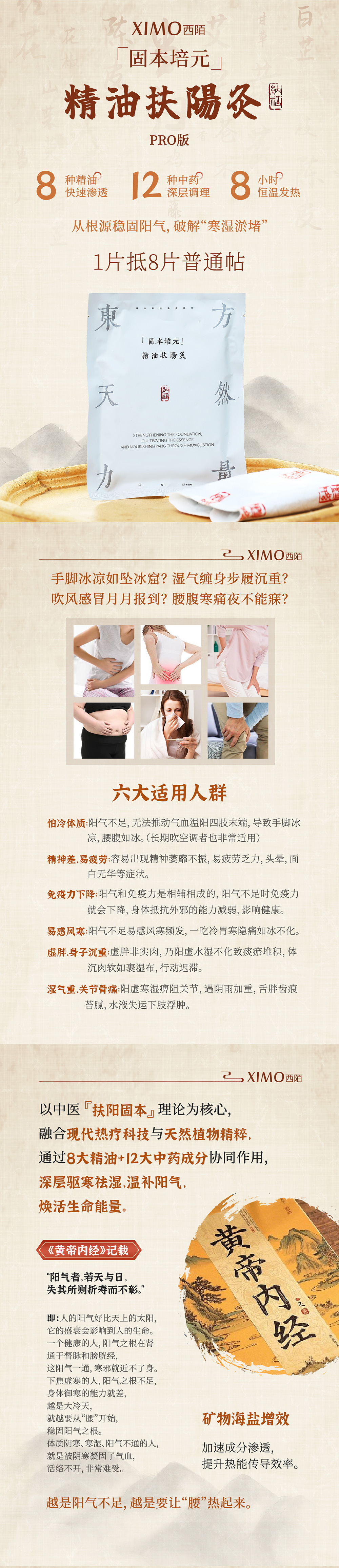 【固本培元 祛痰湿 寒气 缓解酸痛 暖宫1片抵8片】精油扶阳灸贴1片 西陌