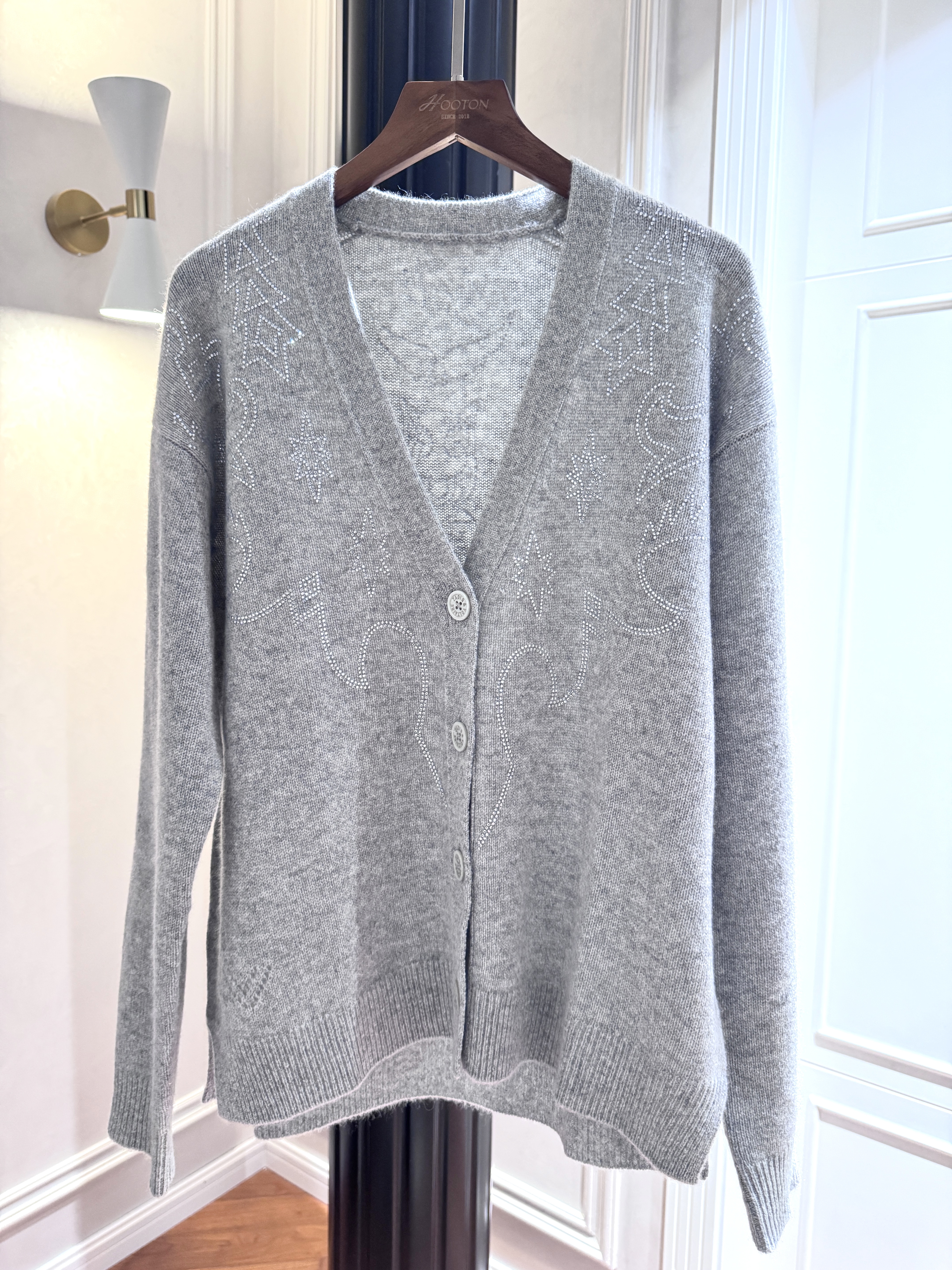 (带标稀缺货源)火桐hooton 伊甸园天使 重工爆闪烫钻山羊绒V领开衫YT2501