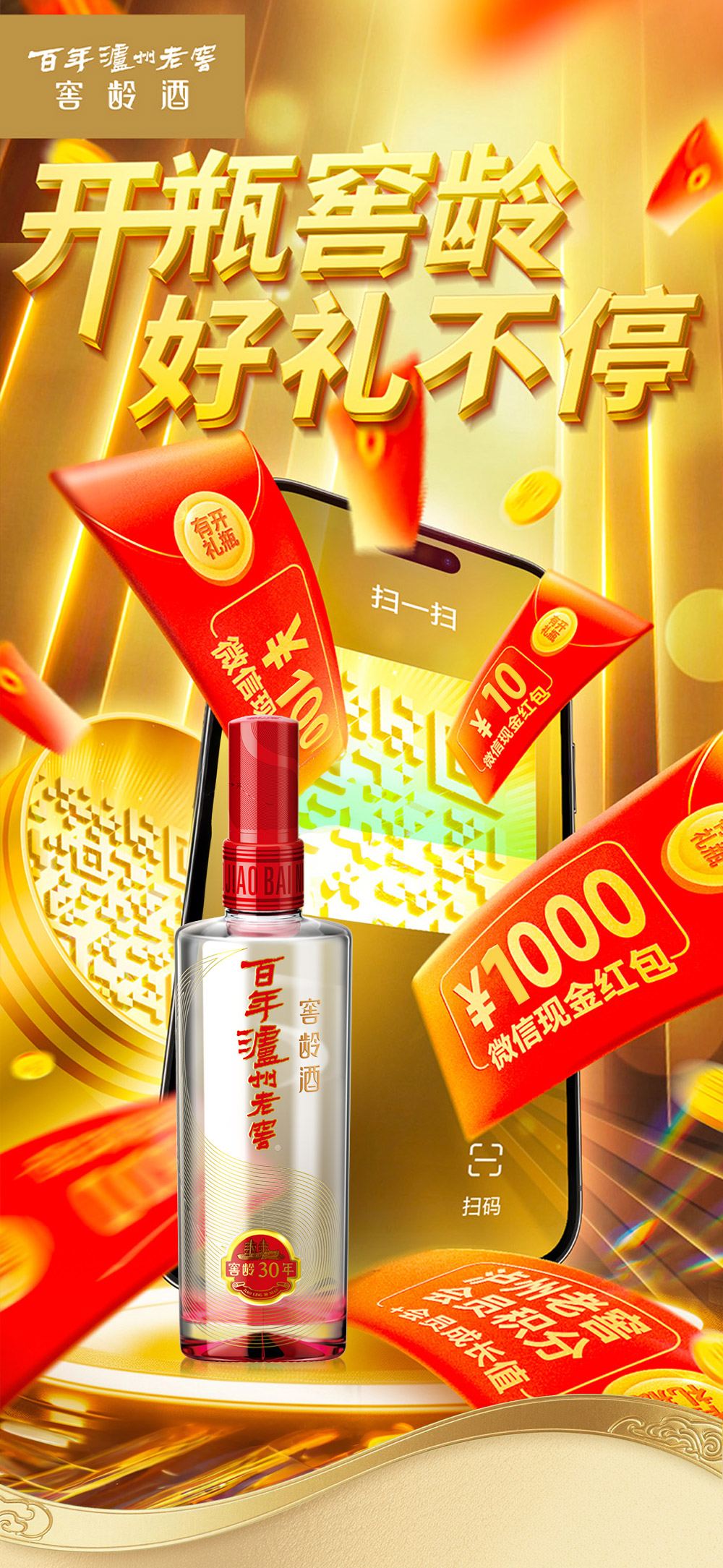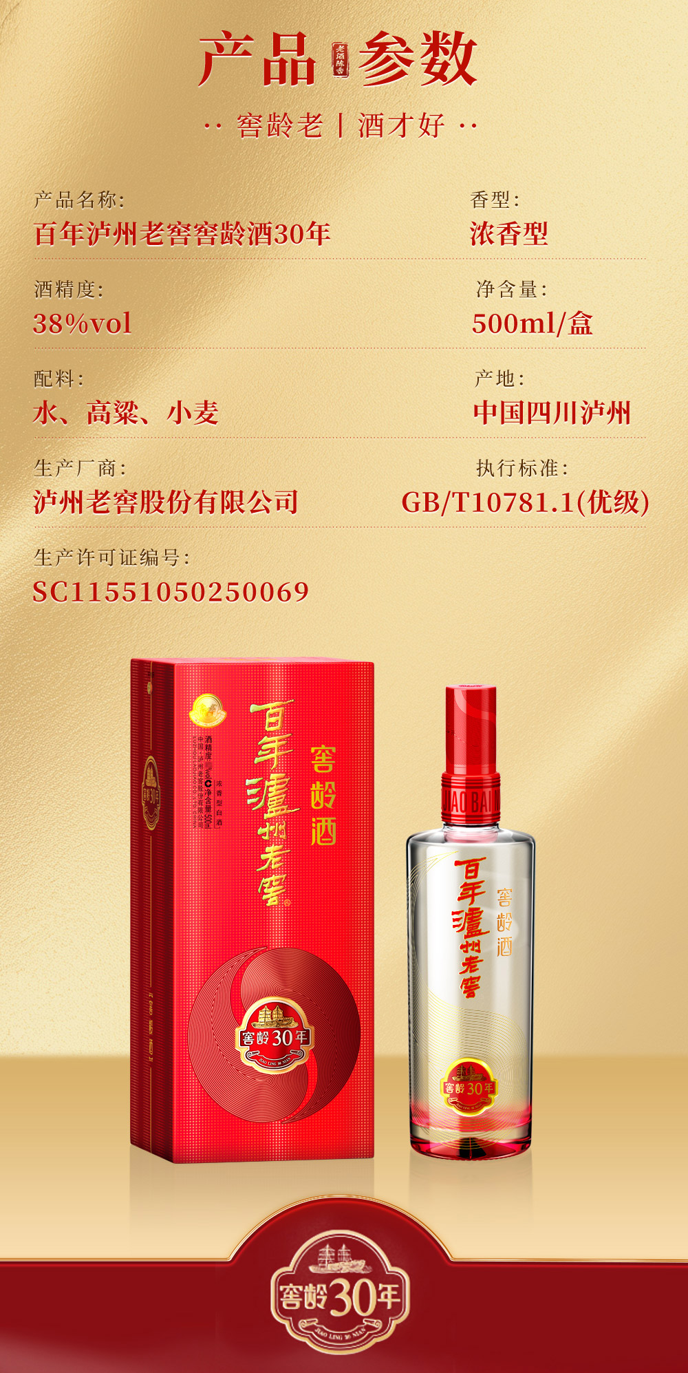 【扫码有好礼】38度百年泸州老窖窖龄酒30年500ml *2 泸州老窖官方旗舰店