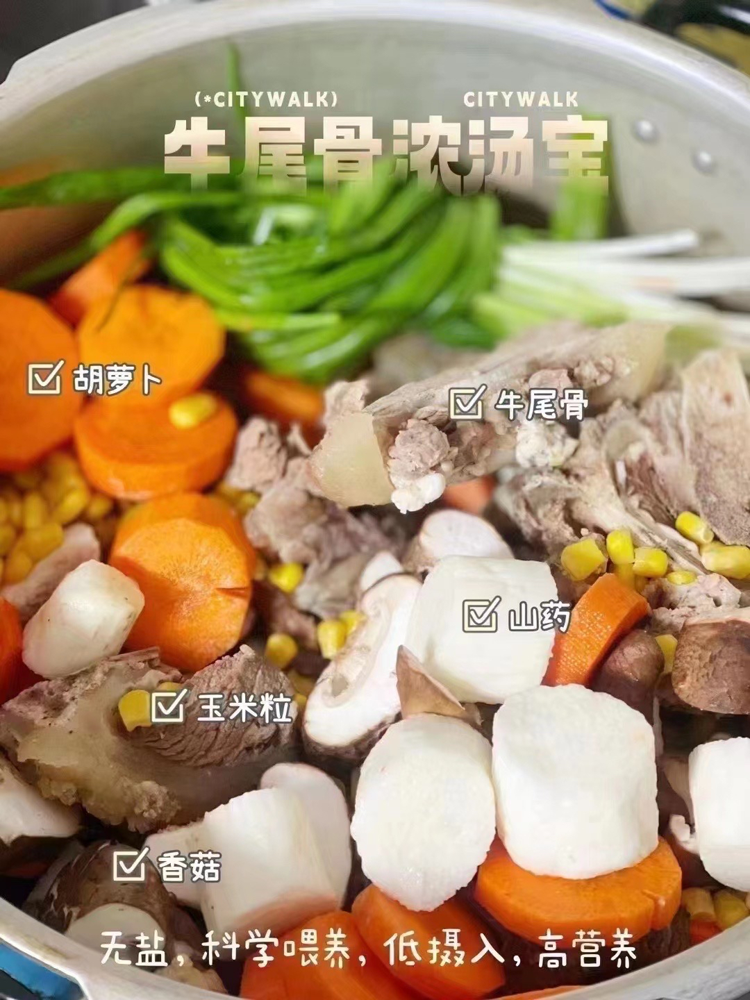 材料:牛尾骨,玉米,铁棍山药,胡萝卜,冬菇