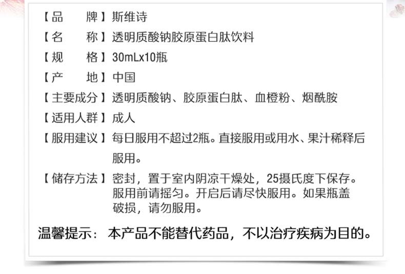 Swisse斯维诗透明质酸钠胶原蛋白肽饮料30ml*10瓶