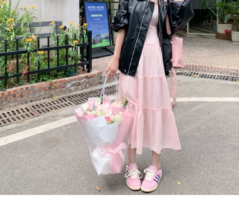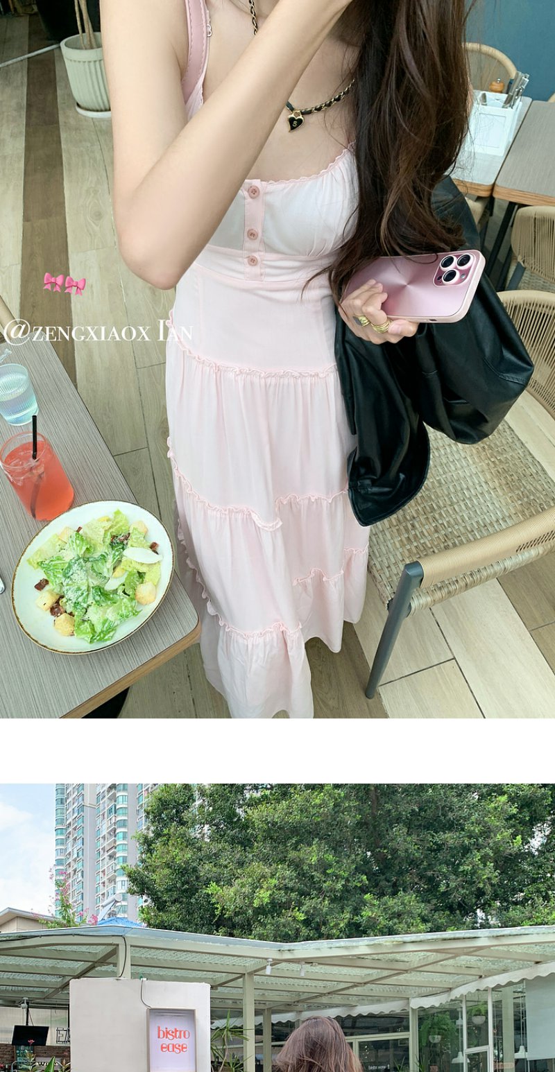<曾小咸推荐> 【目光收割机】粉色吊带裙