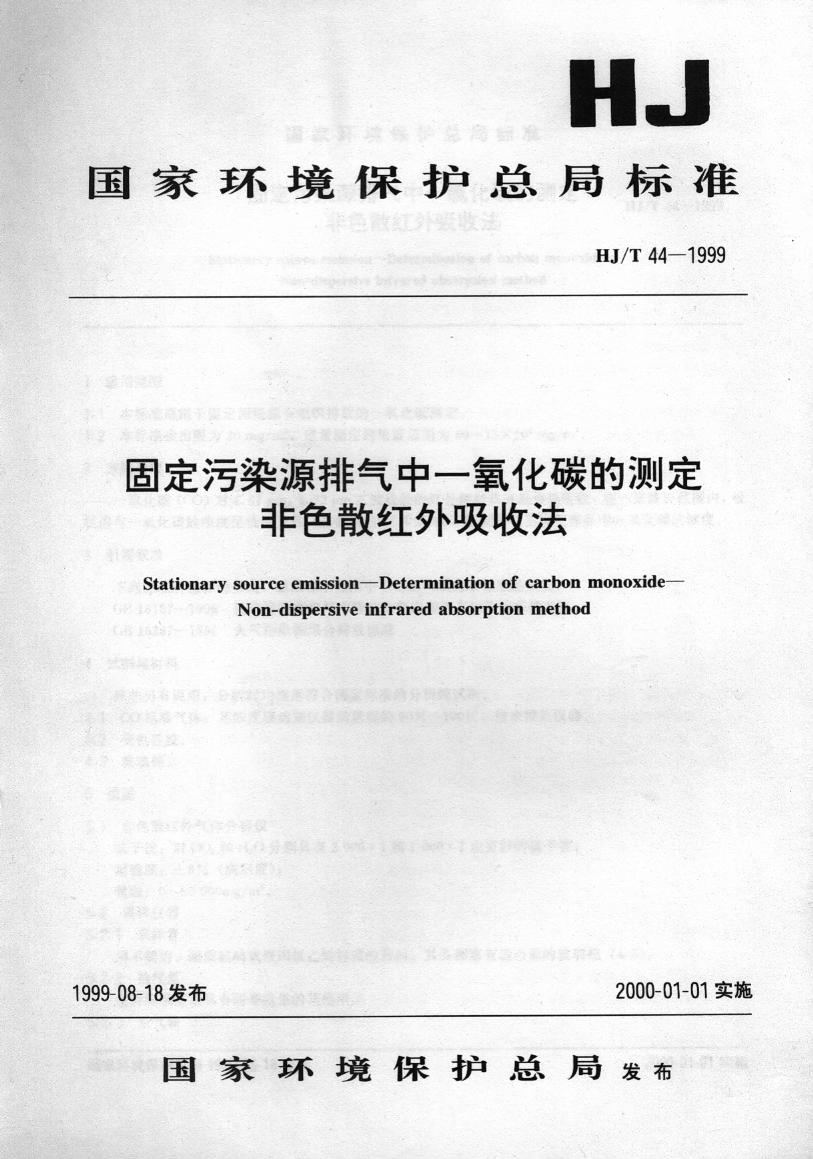 HJ/T44-1999固定污染源排气中一氧化碳的测定非色散红外吸收法 国家环境保护总局标准