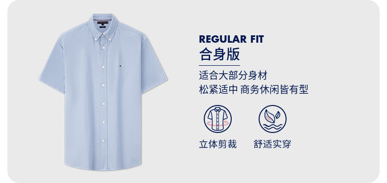 TOMMY 短袖衬衫男 MW36272-0GY 天蓝色.