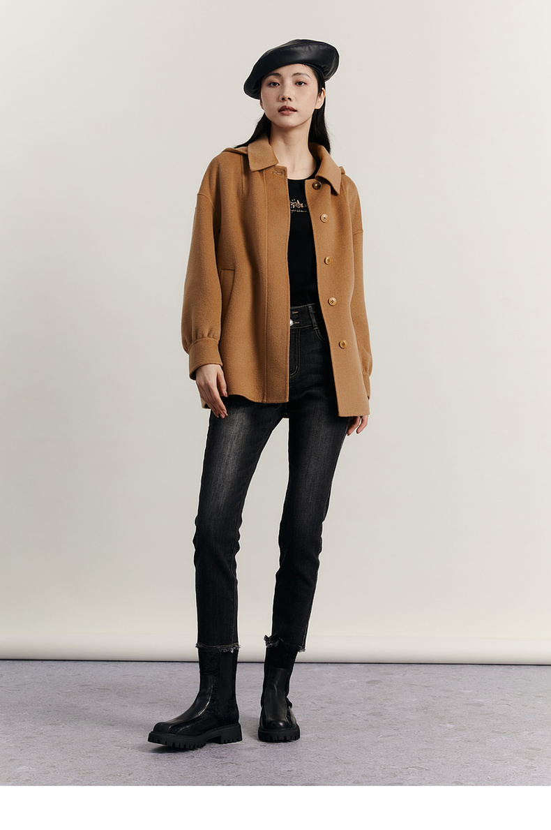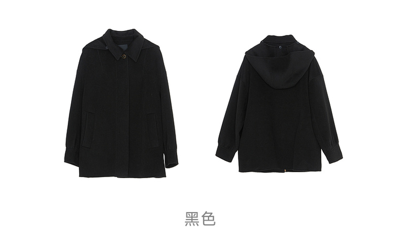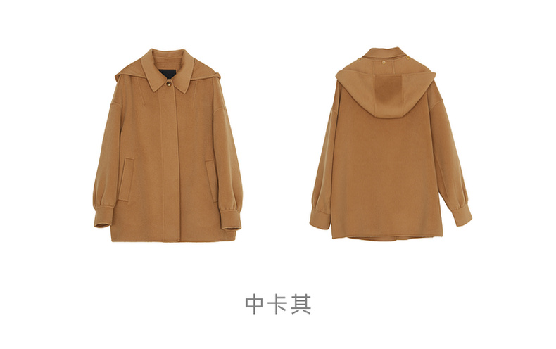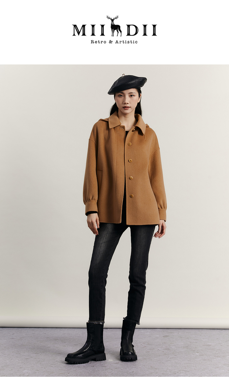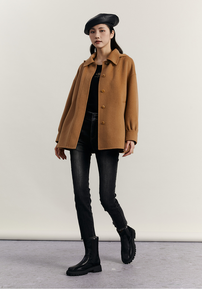 谜底中长款毛呢大衣女2023冬简约翻领单排扣羊毛呢外套234MD1487