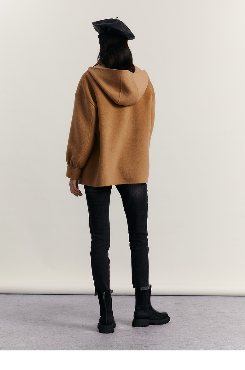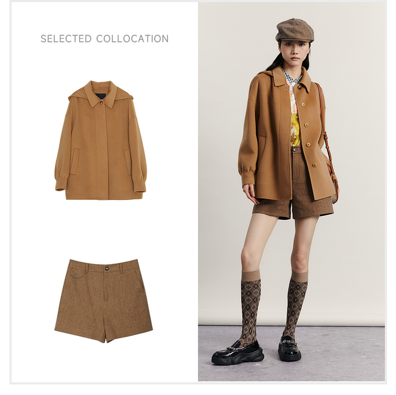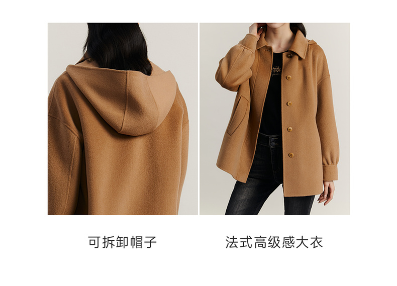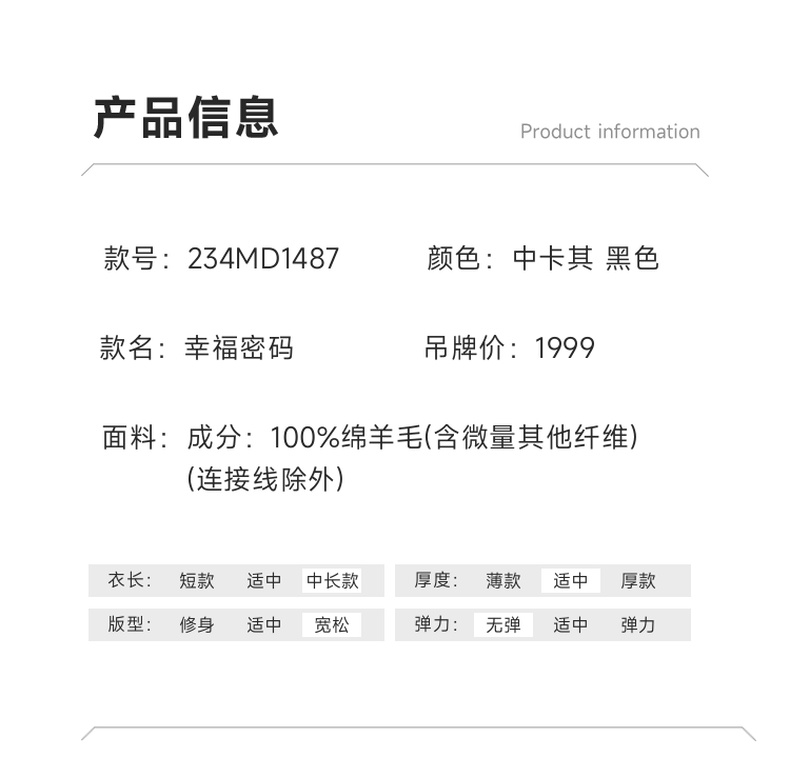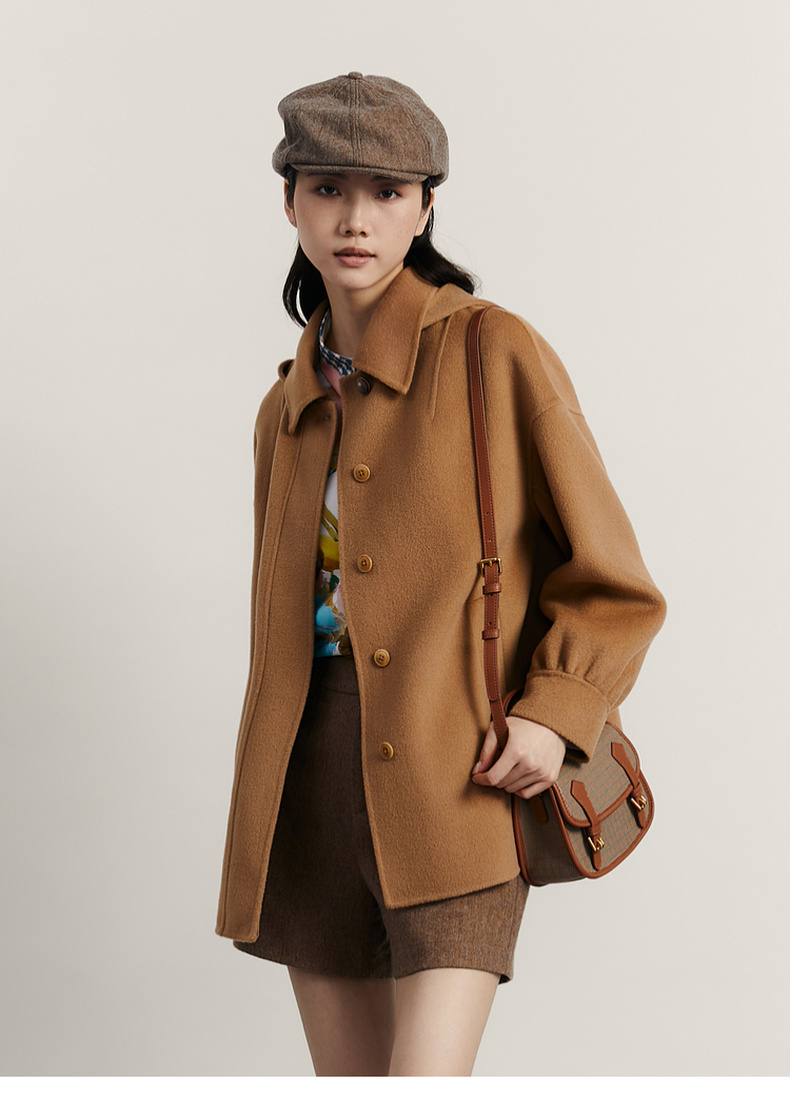 谜底中长款毛呢大衣女2023冬简约翻领单排扣羊毛呢外套234MD1487