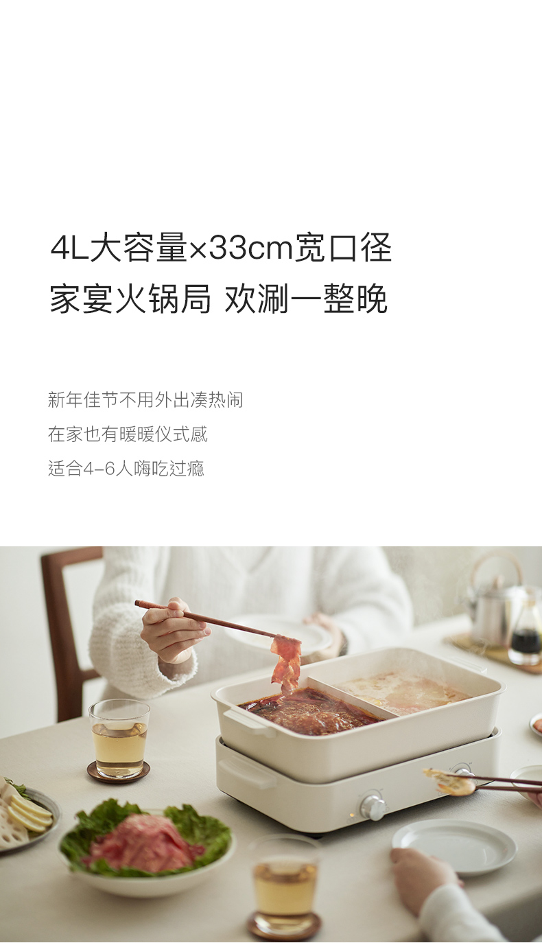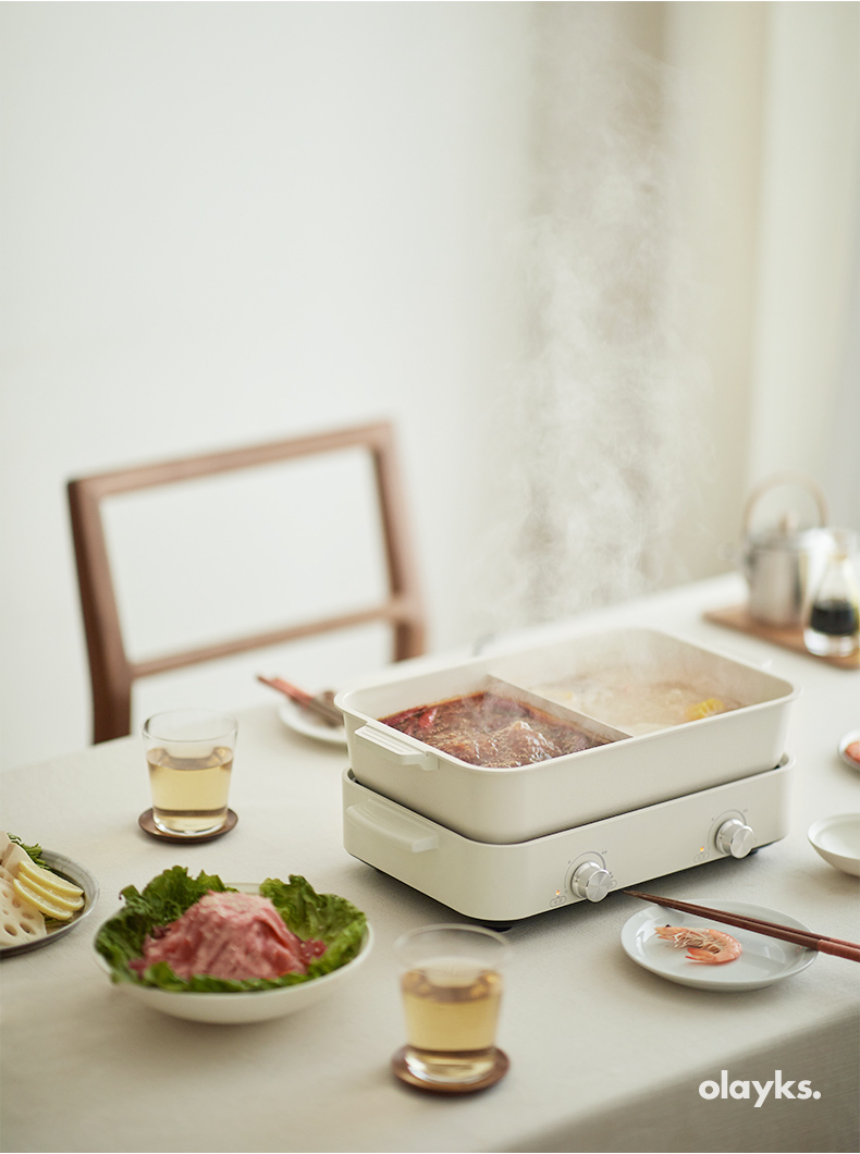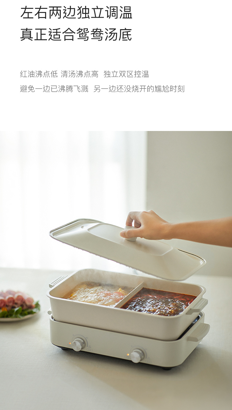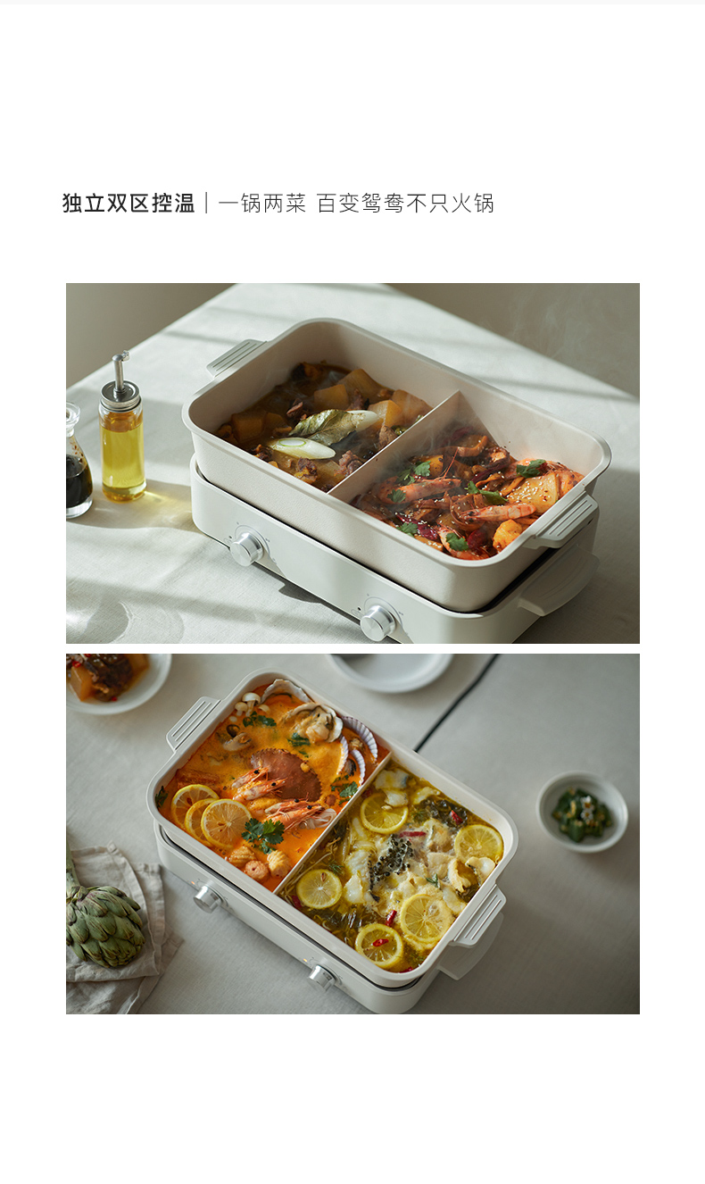 olayks欧莱克4L电火锅家用多功能煎炒分控速沸电热不粘分体鸳鸯锅
