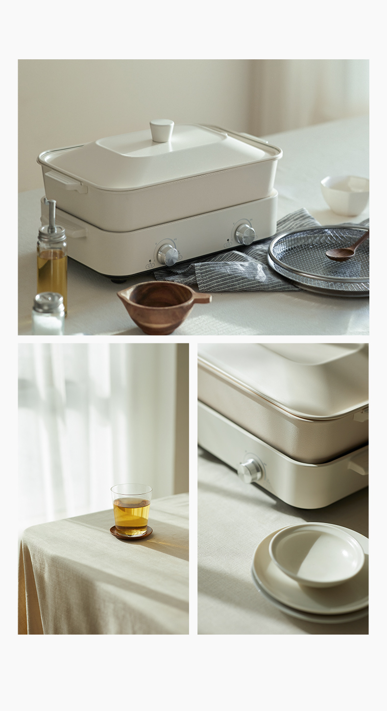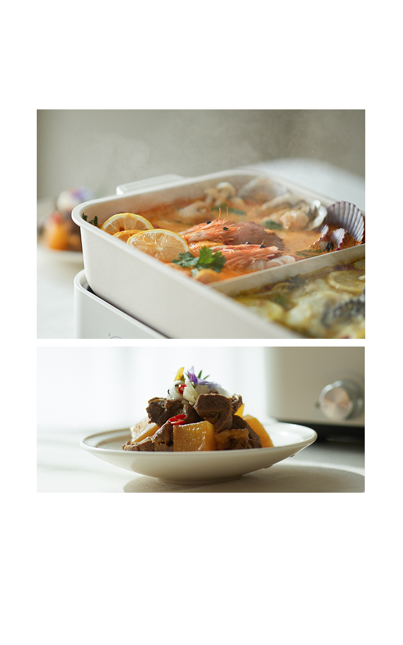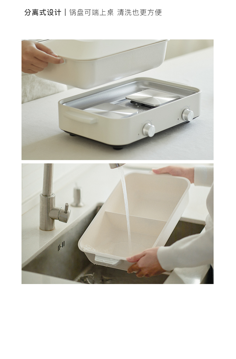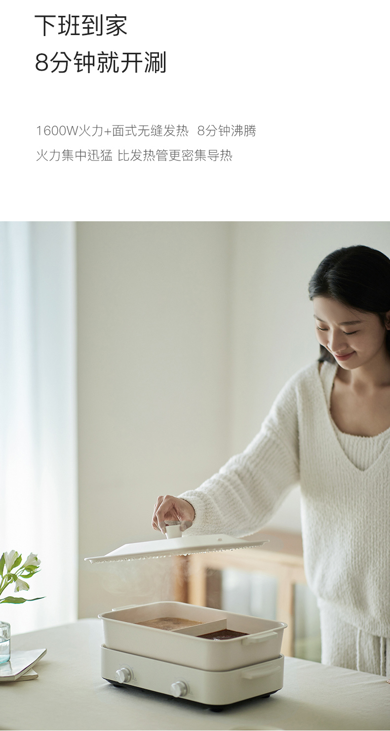 olayks欧莱克4L电火锅家用多功能煎炒分控速沸电热不粘分体鸳鸯锅
