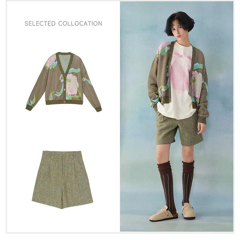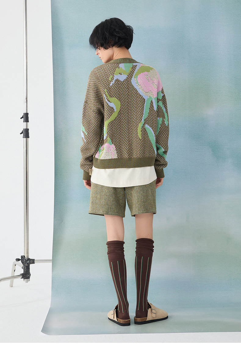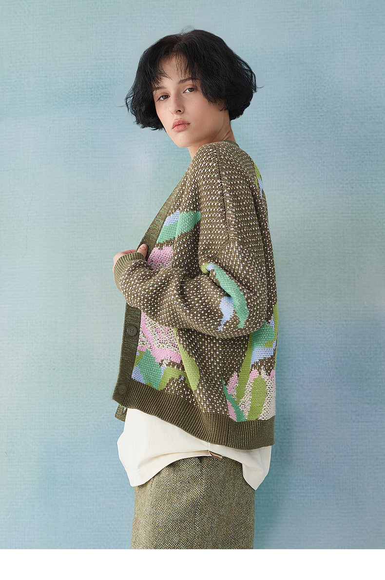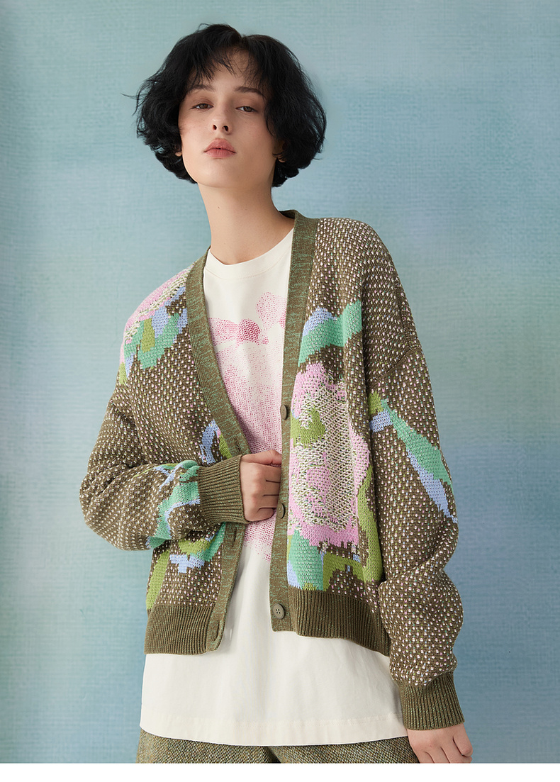 谜底针织开衫女2025春季新品原创提花宽松百搭毛衣毛衫251MZ0307