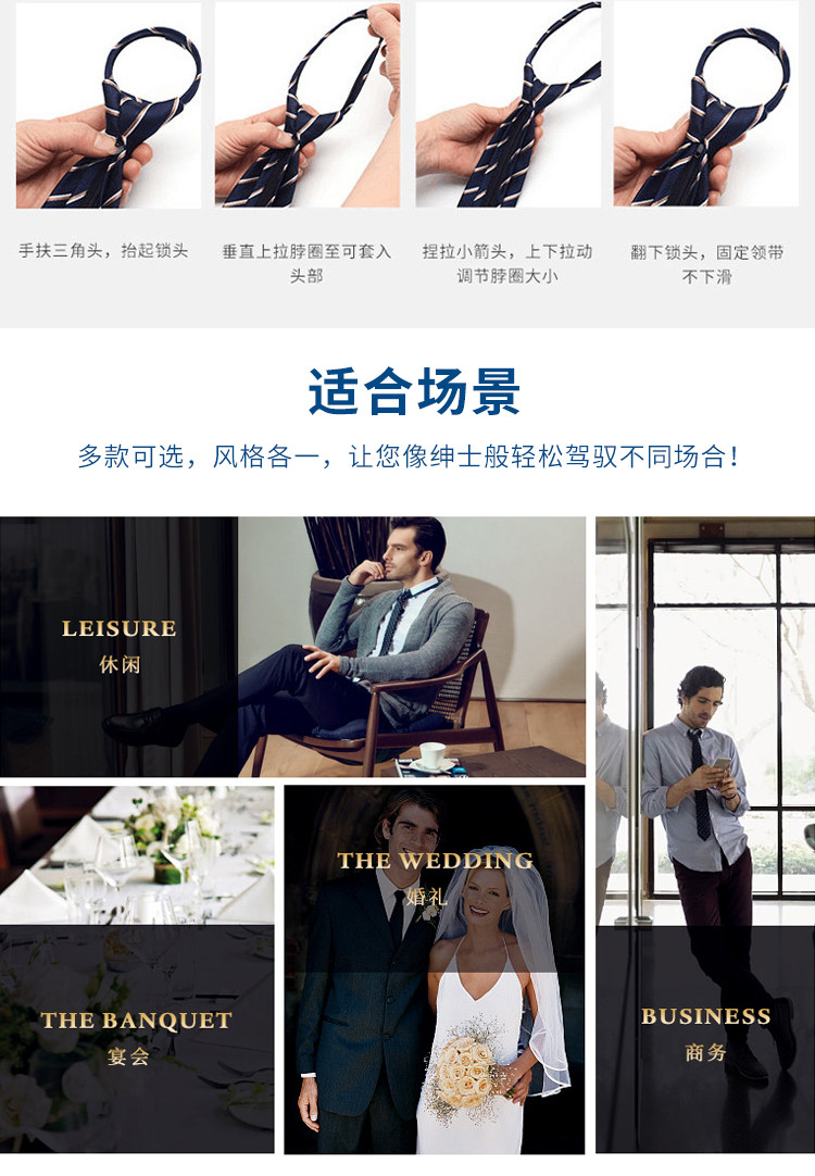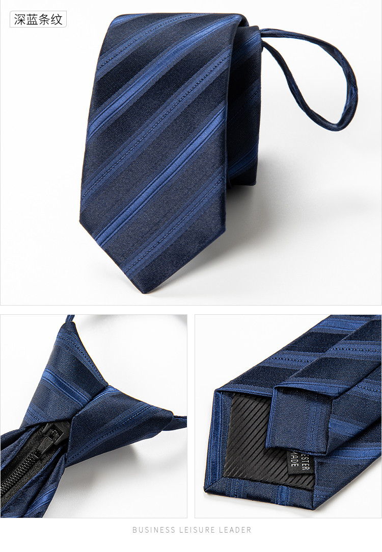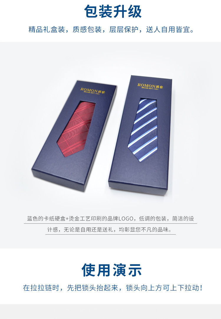 【礼盒装】罗蒙免打结拉链领带男士正装商务韩版休闲窄款懒人条纹领带