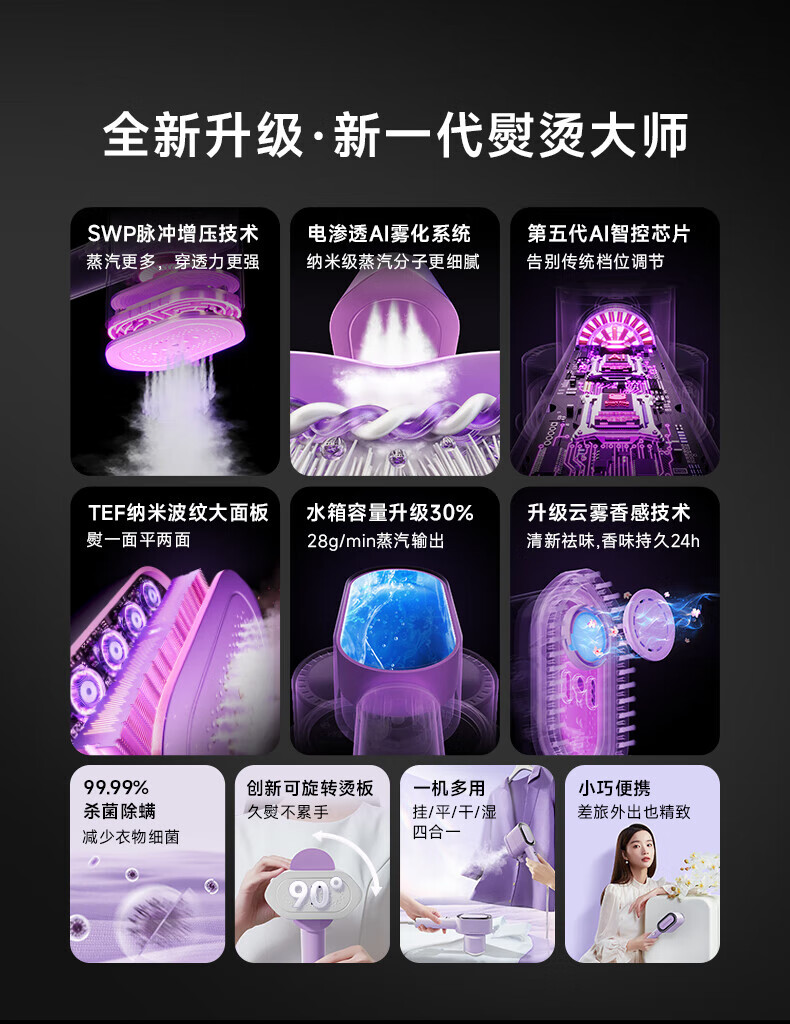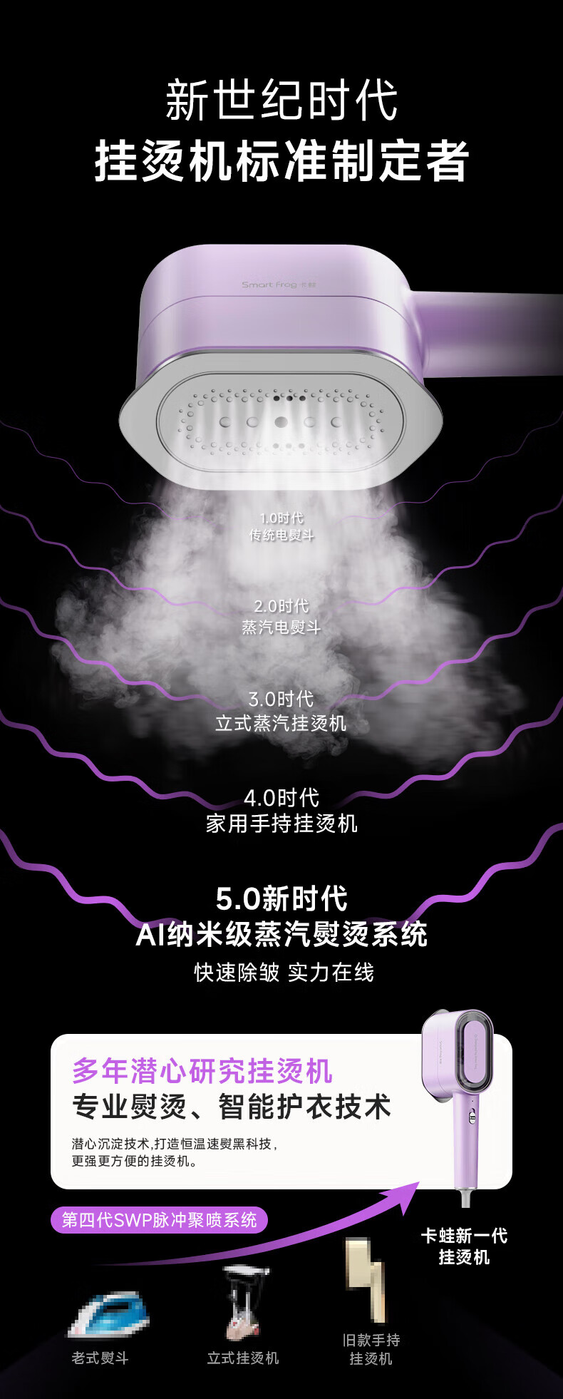 【多样屋专柜】卡蛙挂烫机手持小型电熨斗熨烫机家用差旅折叠迷你便携烫衣